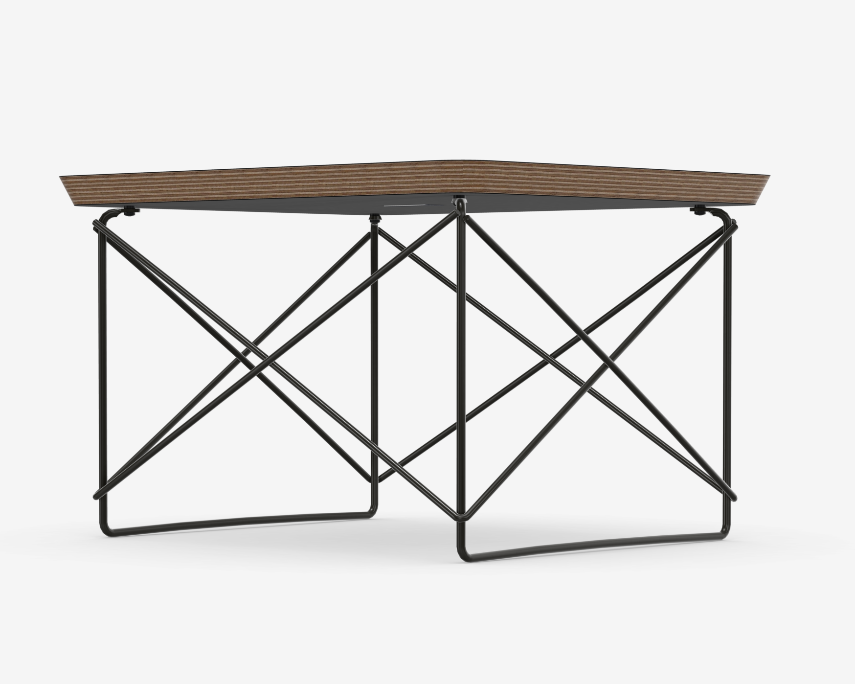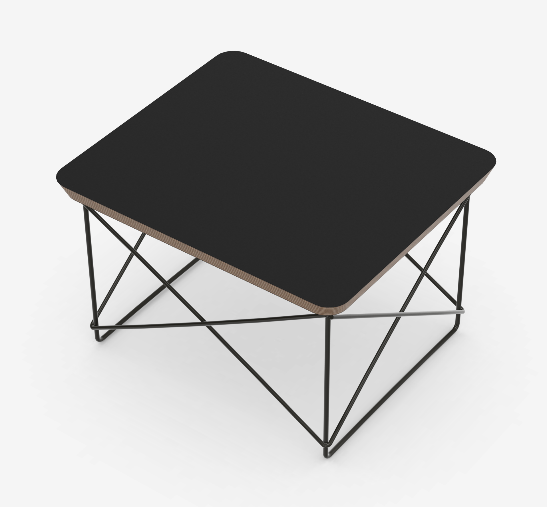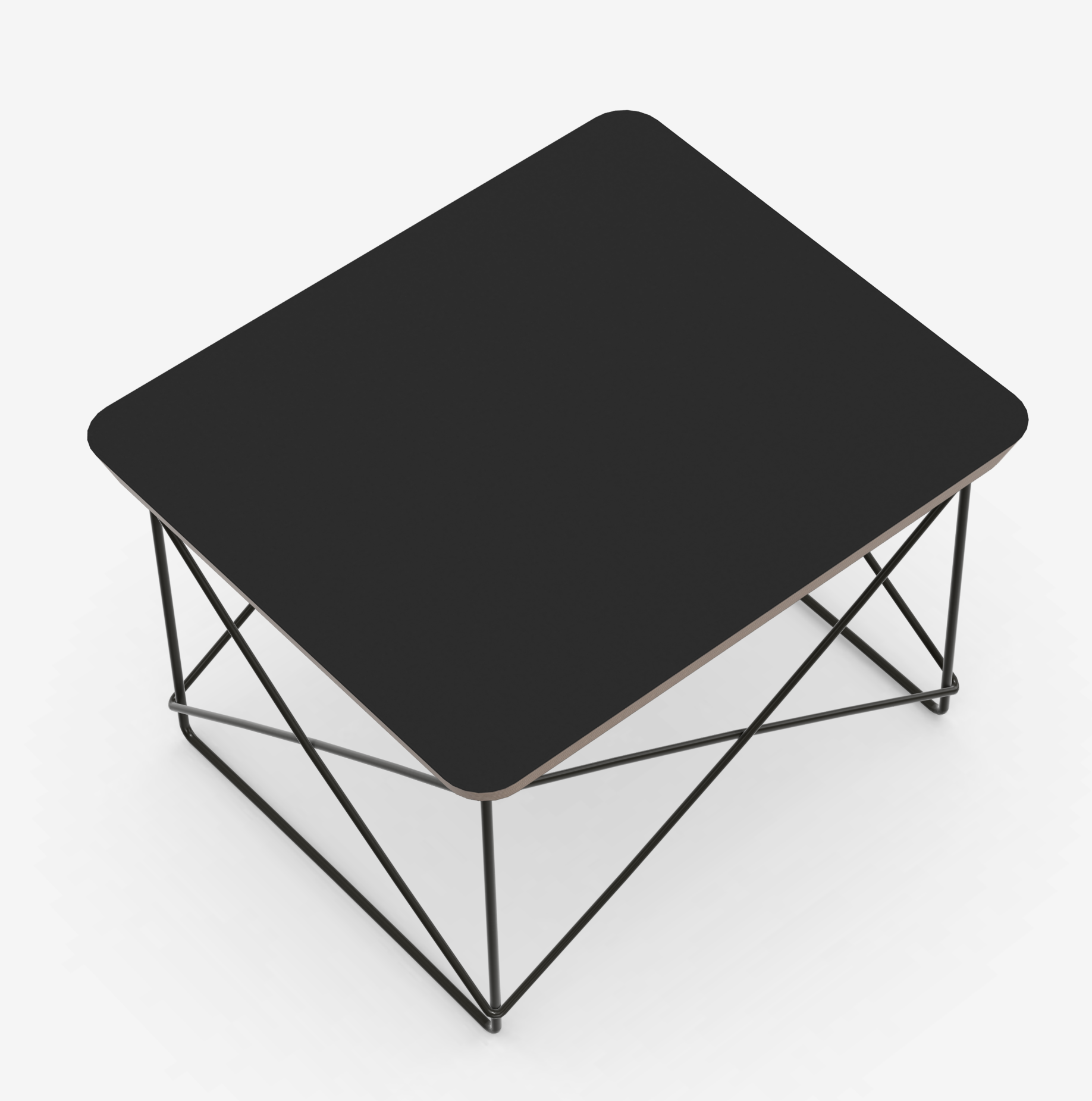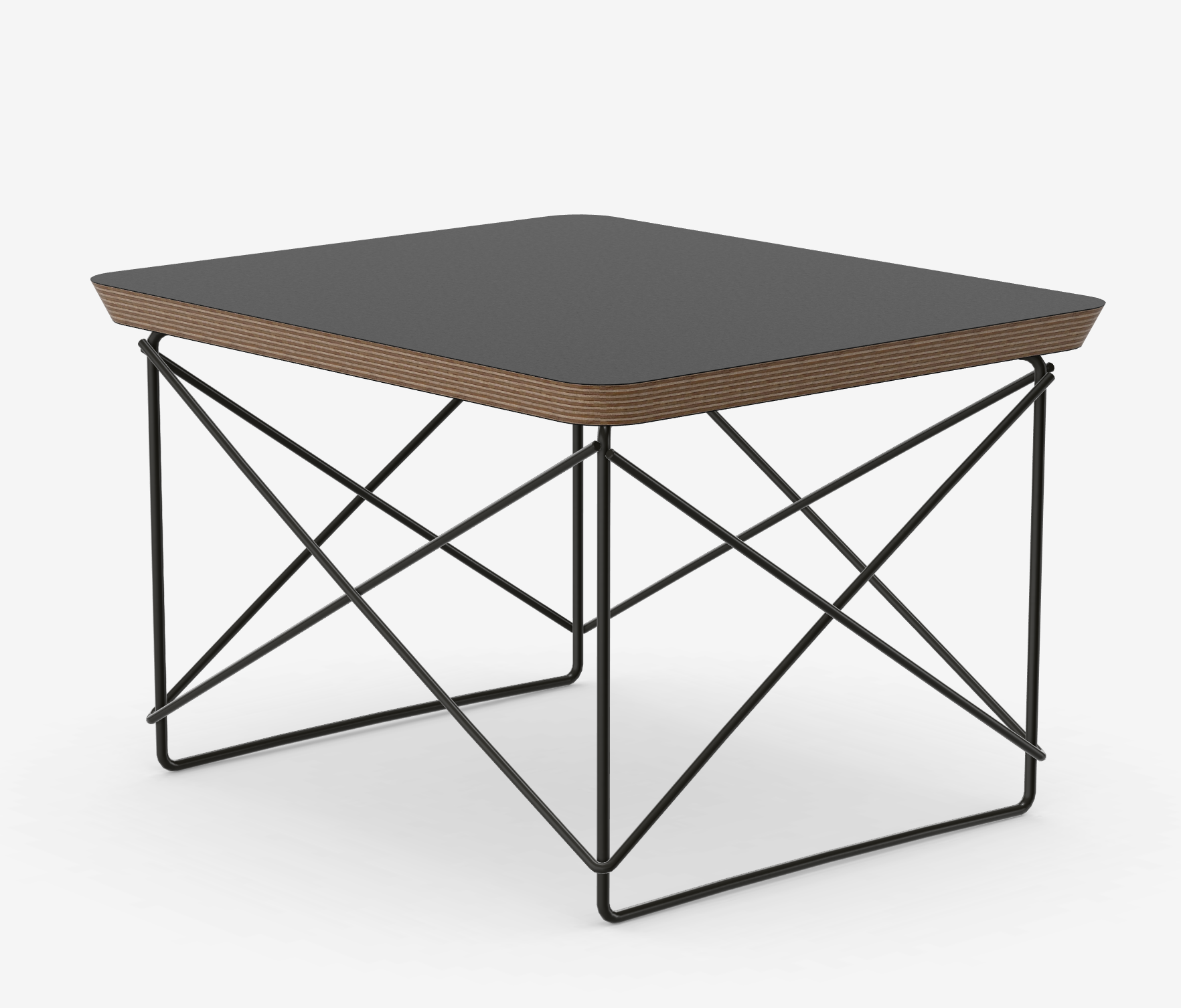 美國設計師夫妻檔 Charles & Ray Eames 於 1950 年設計的經典邊几,LTR 為 Low Table Rod Base 縮寫。桌面採楊木夾板芯 HPL 高壓美耐板,桌腳為鋼絲焊接結構霧黑粉體塗裝,造型輕盈卻十分穩固,單獨擺放或多張組合使用皆宜。