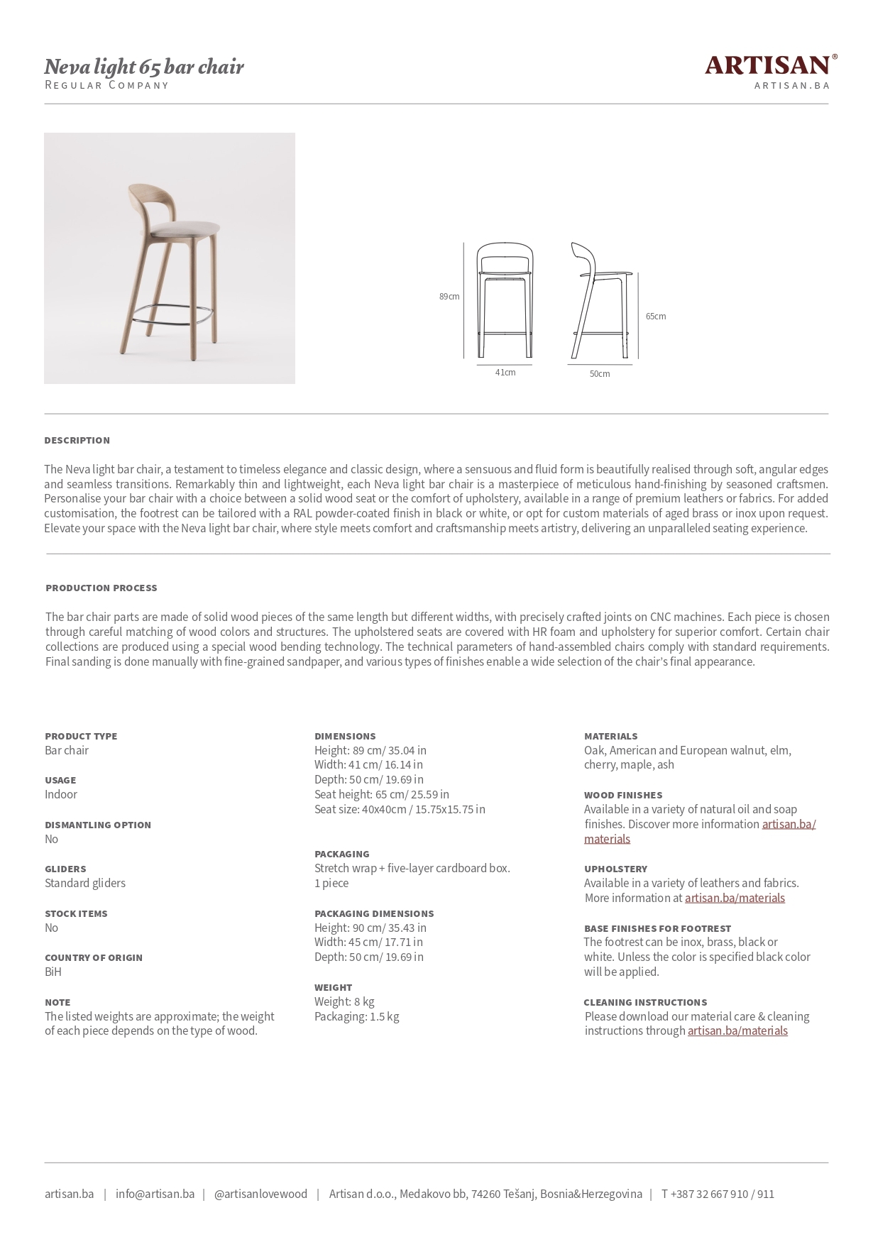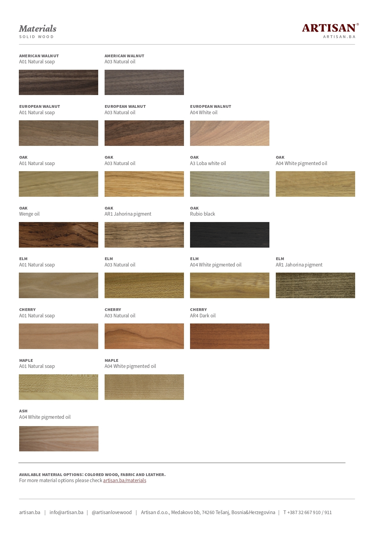 ARTISAN 品牌是由東歐國家—波士尼亞與赫塞哥維納當地一間 50 年精製傳統木作製品店 Ćostović 轉型成功而來,它們以手工高品質的實木家具聞名。從一棵樹木到製作成一張椅子的過程,包含了許多繁複的製作程序:原木挑選、成品的修飾和包裝配送過程等,每個環節都賴工匠師傅的敏銳眼光精心挑選,並且親手觸摸完成檢驗程序,層層把關確保品質,您能夠安心使用 ARTISAN 的家具產品,並享受木製產品帶來的溫暖質樸,為生活增添一份自然之美。