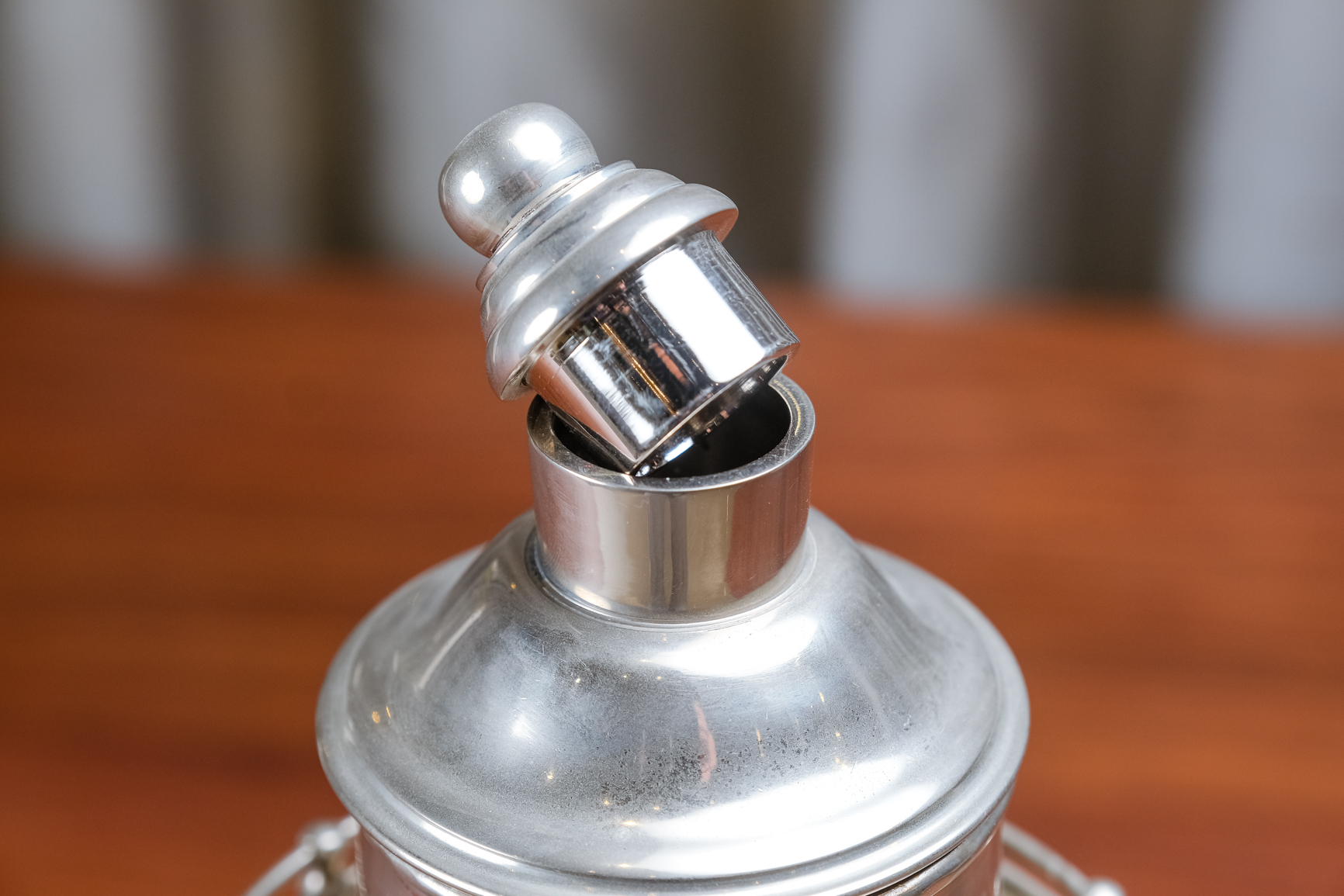 這件作品完美復刻了當年的「Speakeasy Special」風格,採用黃銅手工打造並鍍上厚實的純銀,展現出閃耀且沉穩的貴金屬質感。它既是餐櫃上最引人注目的歷史藝術雕塑,也是您舉辦私人派對時最具話題性的調酒利器。