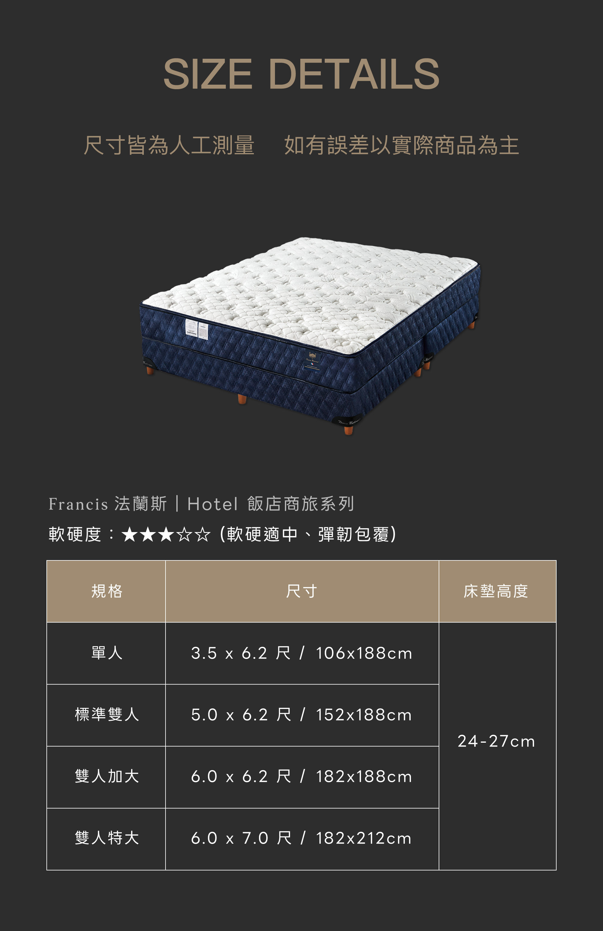 床墊高度 24-27cm