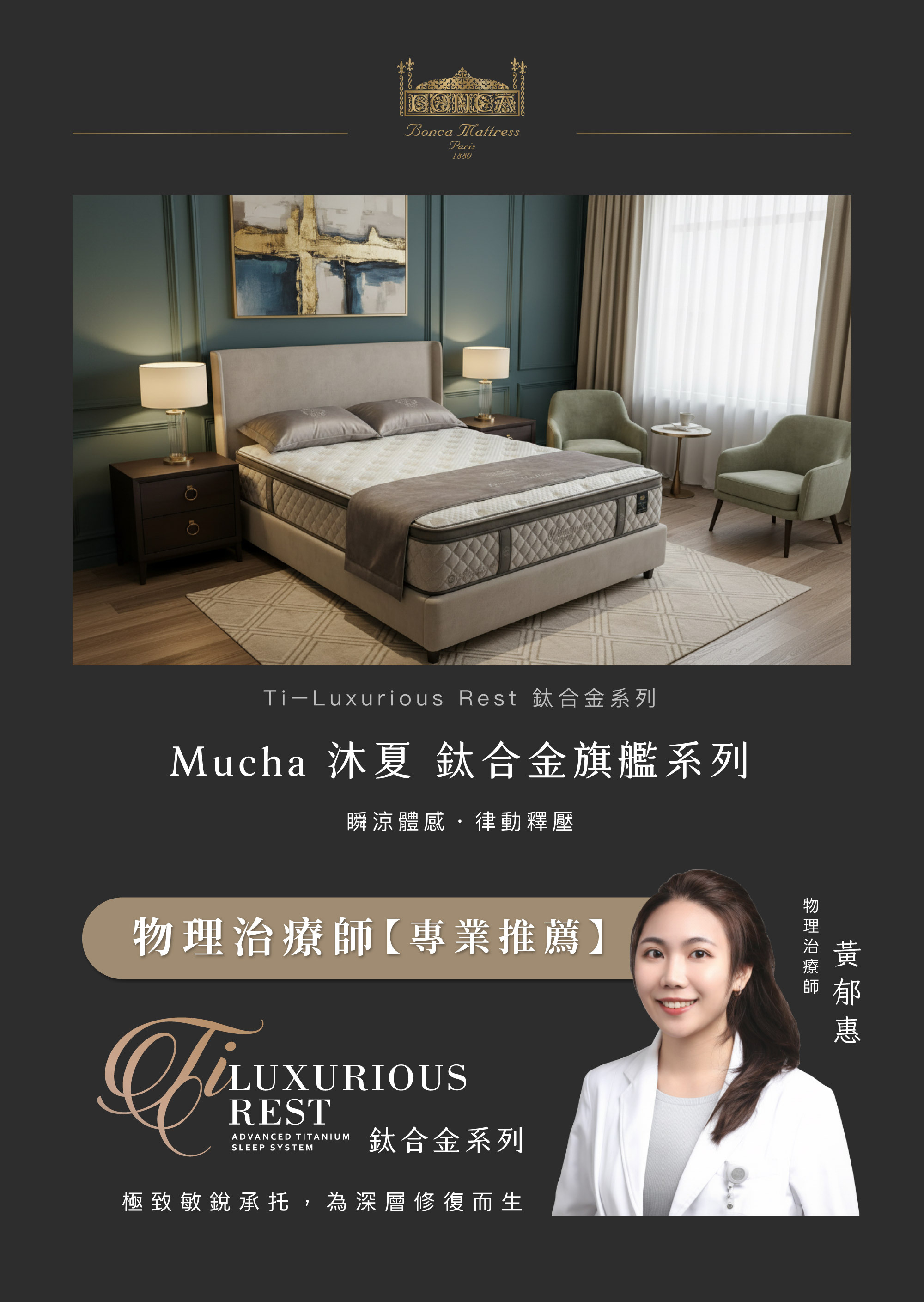 核心搭載 Micro Care® 鈦合金獨立筒彈簧,以蜂巢式排列實現精準點對點支撐,提供卓越的護背機能。四周環繞 360° 高密度泡棉護邊,穩固床緣結構並大幅降低伴侶翻身干擾,為您打造極致穩定、沁涼的深度眠境。