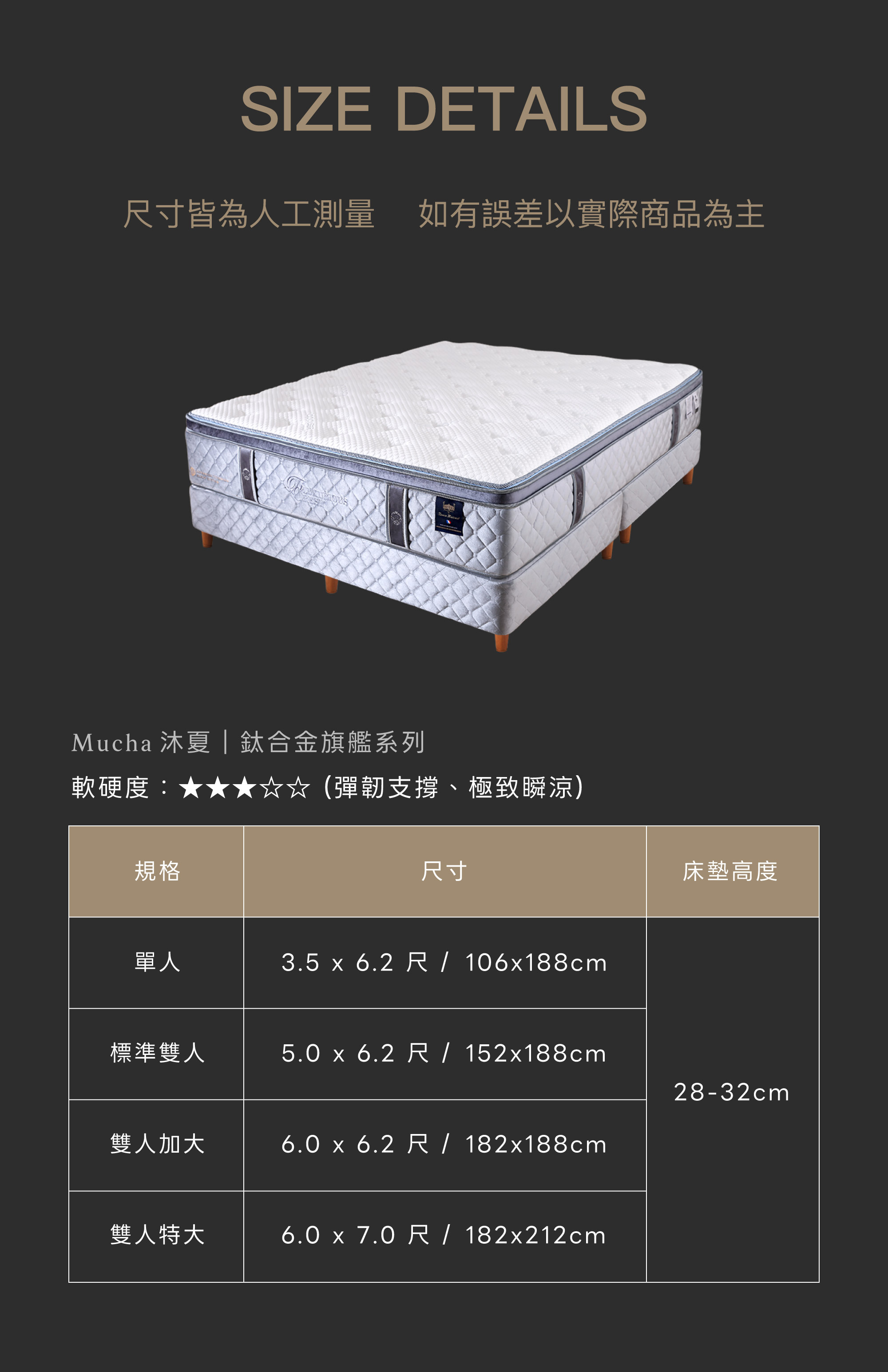 床墊高度 28-32cm