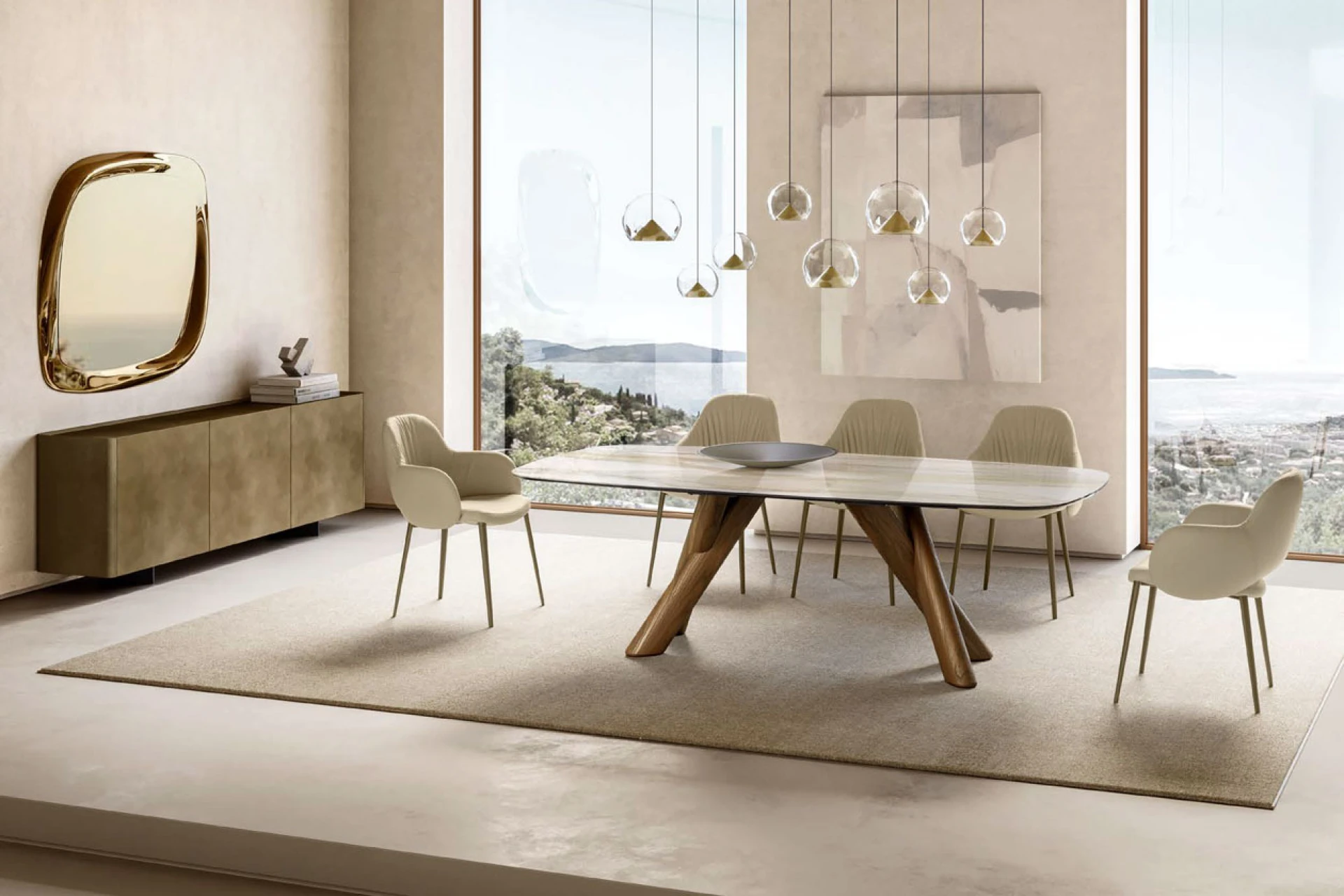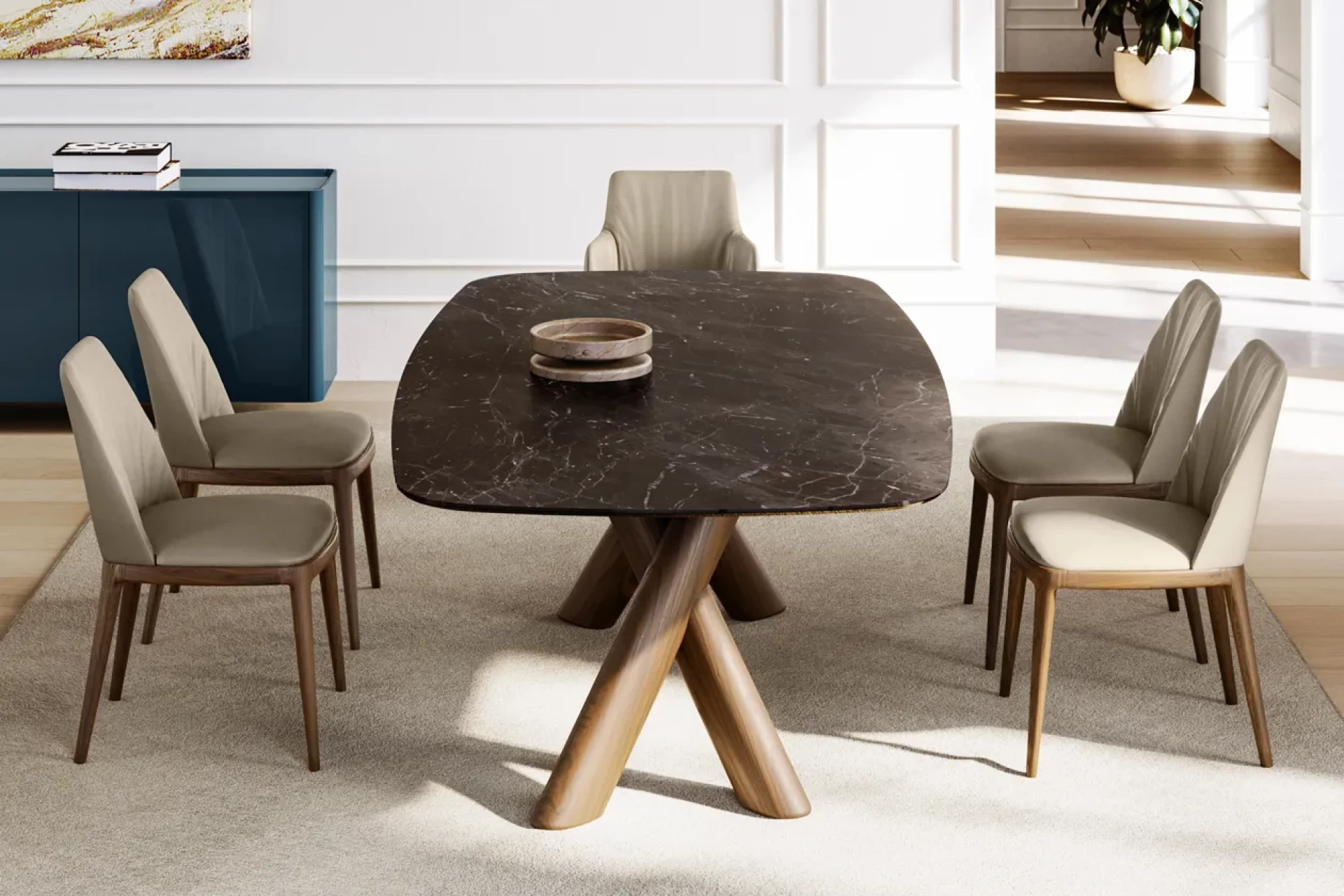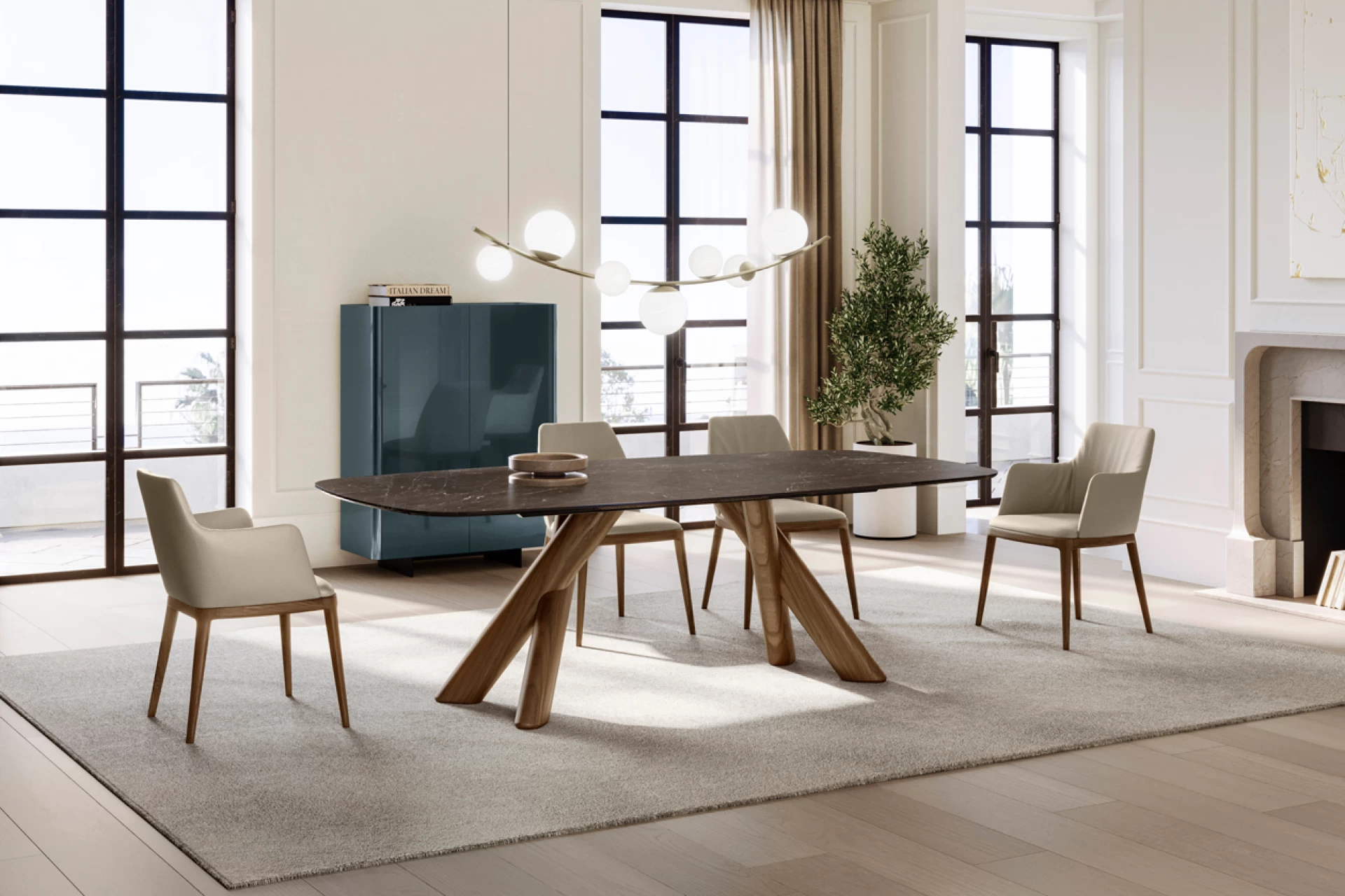 CANOVA 融合了堅實的材質與精確的幾何美學,為追求頂級質感與居家實用性兼得的現代家庭而設計。堅固的實木底座,由數個桌腳以精密的幾何線條交錯配置,讓餐桌擺脫了呆板的形象,呈現出雕塑般的輕盈與動感,為您的空間注入藝術氣息。它能輕鬆融入各種設計風格,完美平衡了奢華品味與日常生活所需。