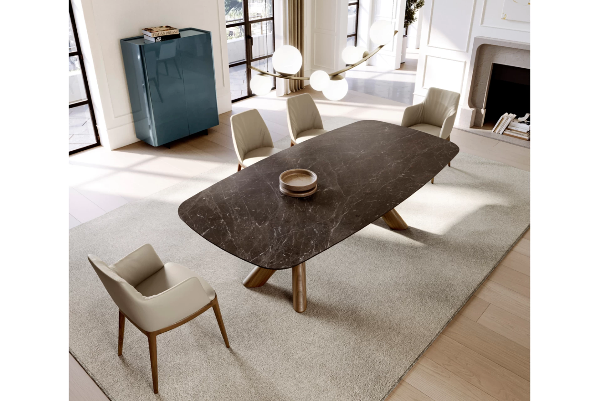 在工藝細節上,King 陶瓷桌面(可選擇桌板形狀)邊緣採用圓潤的亮光漆面完整包覆。這項細膩的處理,不僅帶來優雅的觸感,也讓陶瓷與邊緣之間銜接流暢,將陶瓷面板的精緻美感推向極致。