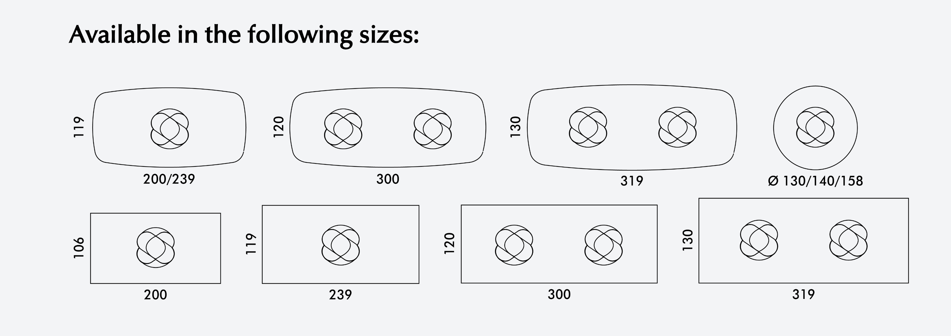 針對大尺寸桌款,提供雙底座版本。桌面材質除了陶瓷外,另可選擇大理石、水晶玻璃或實木版本。