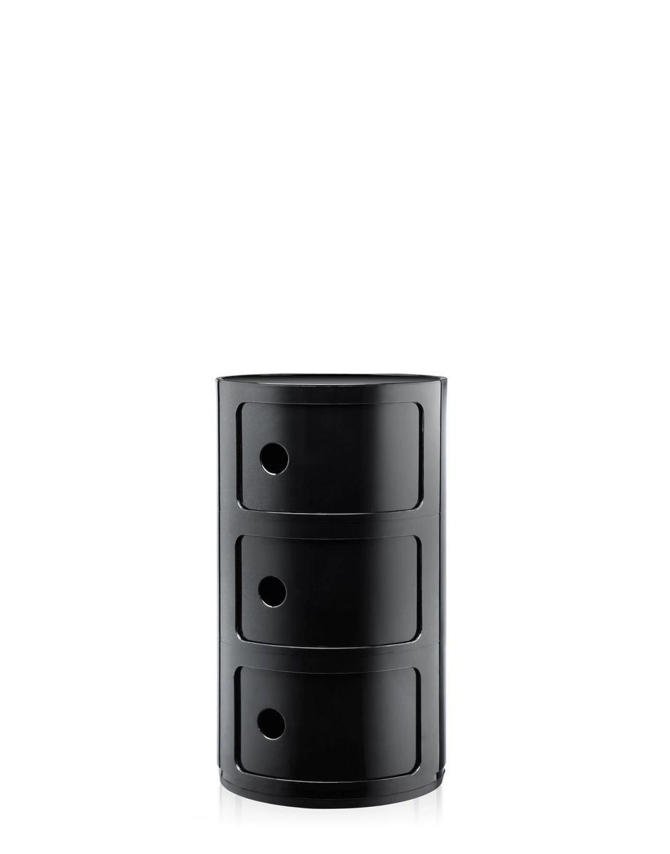 義大利設計師 Anna Castelli Ferrieri 1967 年設計的圓柱收納經典,Kartell 原裝出品。三層固定結構、高光澤塑膠材質,直徑 32 cm、高 58.5 cm,提供 12 款色彩選擇,適合臥室、衛浴、書房等多種空間靈活擺放。