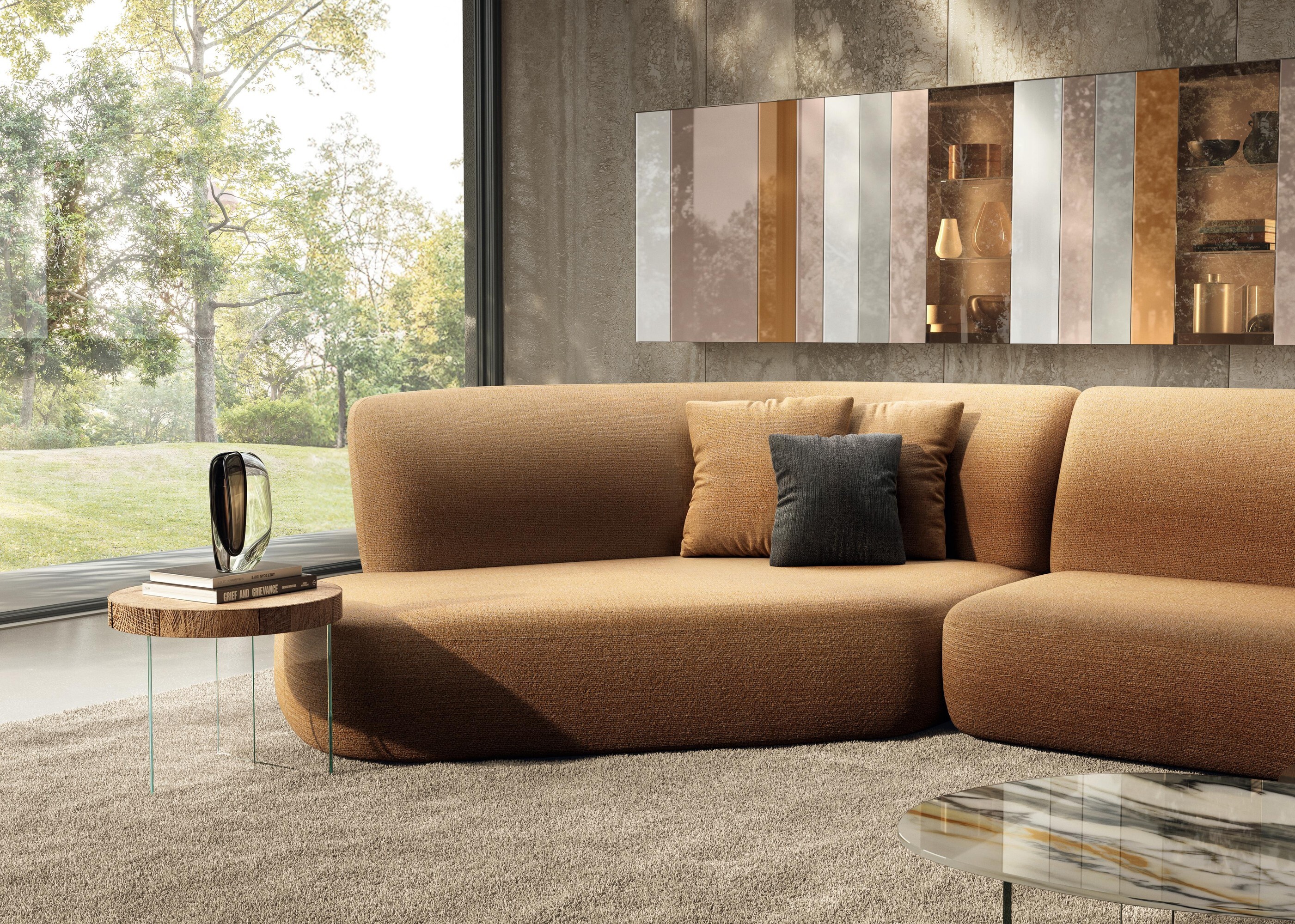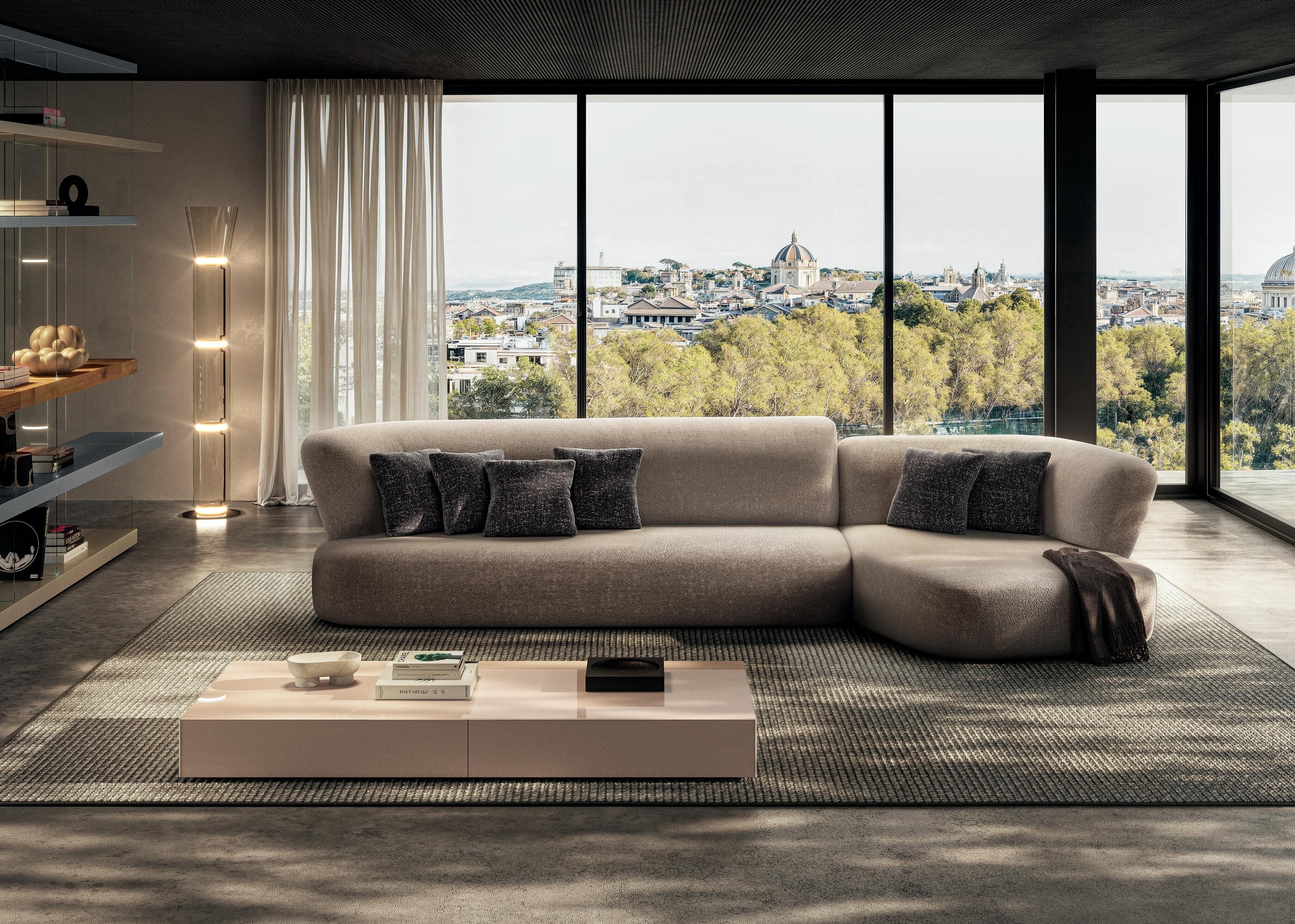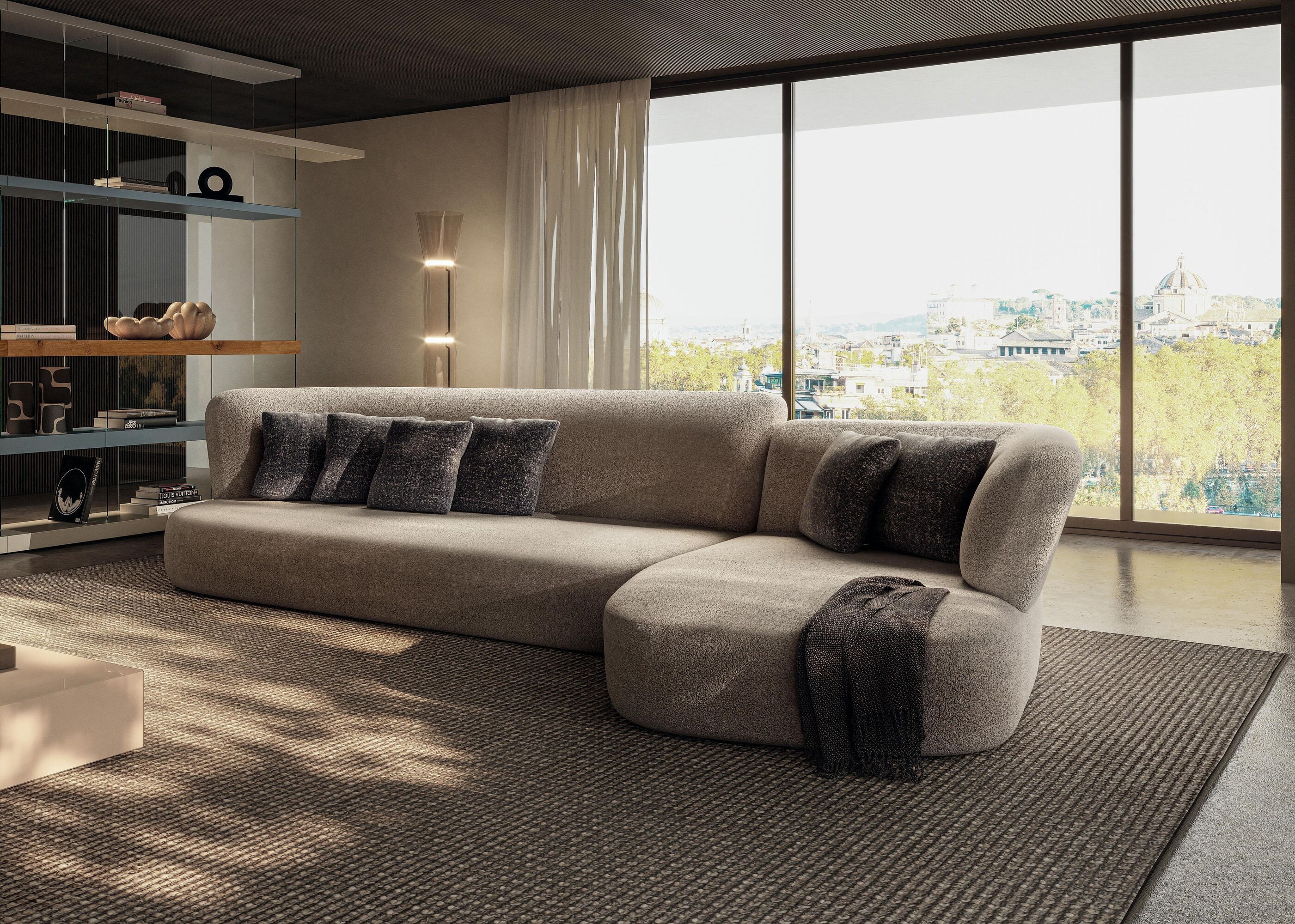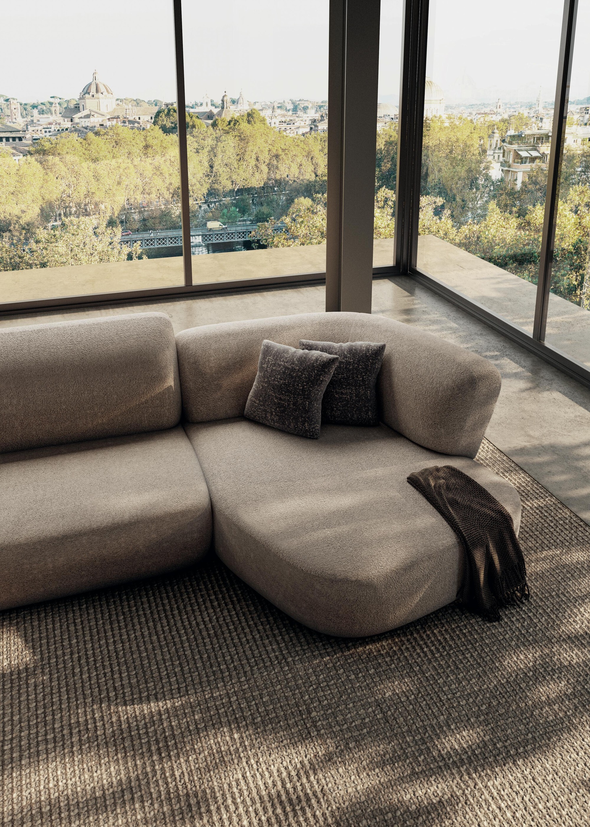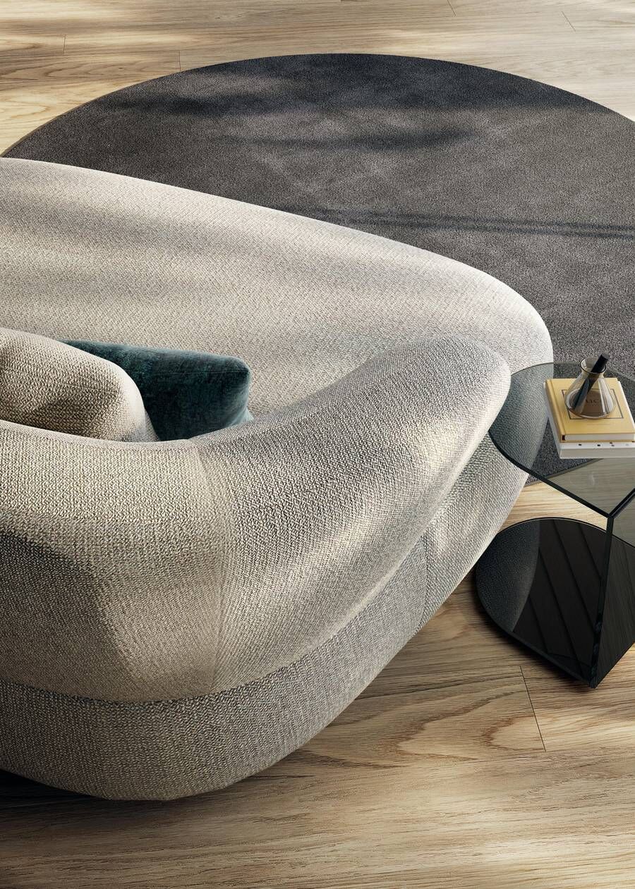 沙發以溫暖的弧度環繞著你,像是被擁抱般地被包覆,帶來被保護的安心感,以及從容、自在的開放氛圍。每個座椅模組都彷彿一座小島,透過不同的造型與尺寸,呼應自然地景的多樣與層次。