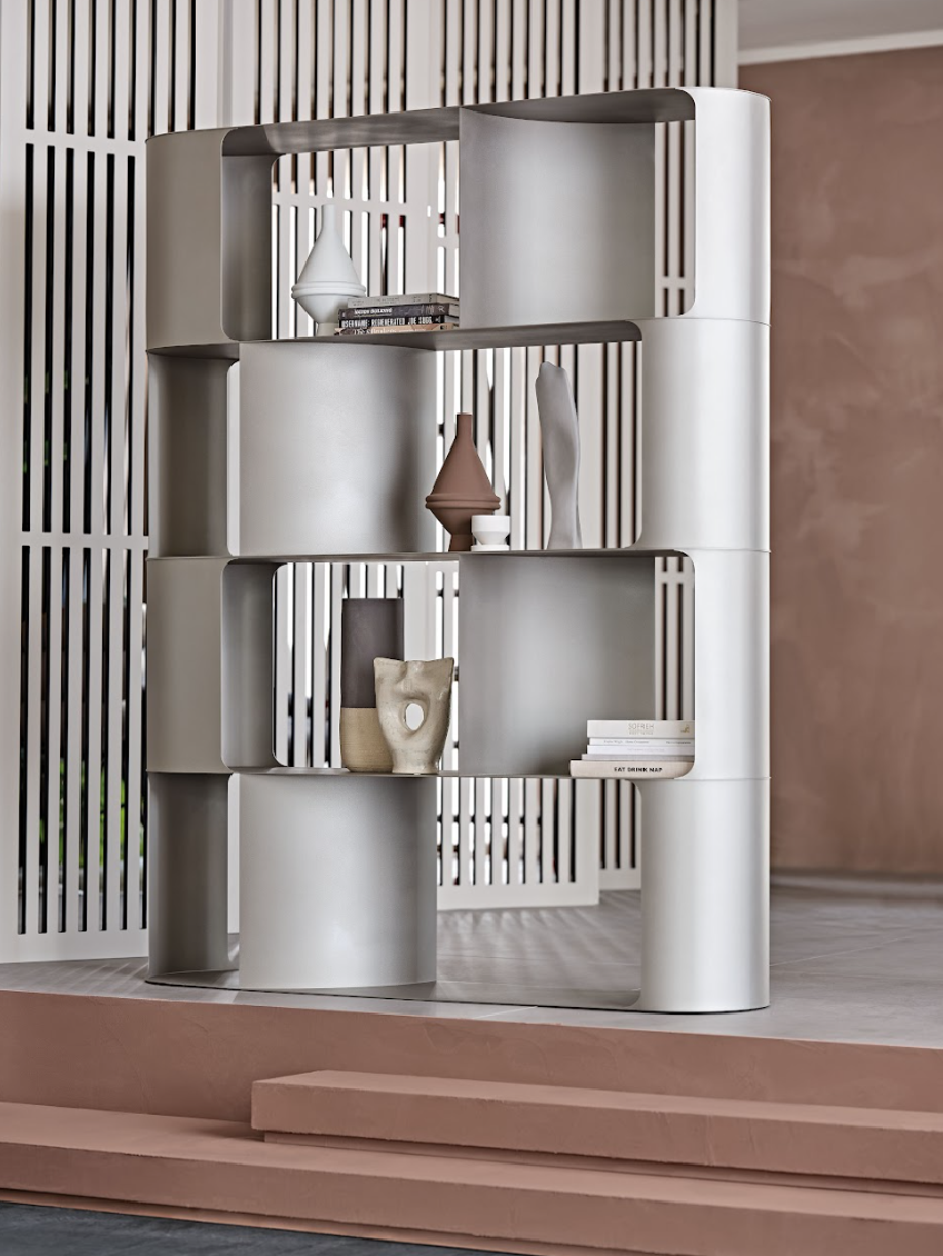 裝飾一個寧靜的環境,同時又能帶給人啟發,秘訣即在於物件中流暢優雅的輪廓,讓細節與設計能夠巧妙融合。由 Ono Design 設計的 Fulham 現代鋼製書櫃正是基於這個美學概念而存在的。該結構由彎曲的組成,呈現出圓潤而婉轉的形狀,使光影之間的過渡變得柔和而溫和,處賦予了這款現代書櫃一種和諧而優雅的美感。將書櫃放在房間中央,也能充當一個引人注目的隔間,完美對稱且平衡。