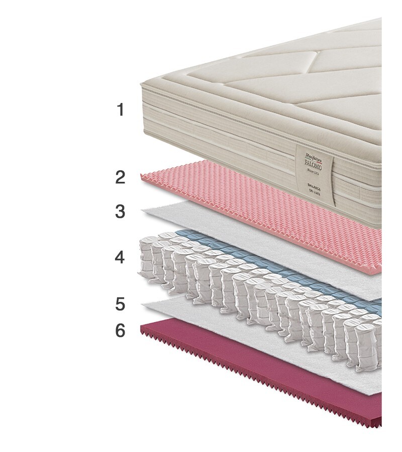 自 1962 年創立以來,Manifattura Falomo 以專業技術、創新思維與嚴謹態度,專注於打造每一張優質床墊,被譽為義大利「健康睡眠」的代表品牌,並在國際間享有極高聲譽,累積了無數幸福與滿意的使用故事。從原料篩選、研發、生產到包裝與運送,Falomo 堅持全程於義大利原廠製作,維持 100% 義大利手工工藝品質。品牌通過歐盟多項高標準認證與嚴格產品測試,確保所有材料皆對人體與環境無害,並具備優異的耐用性。