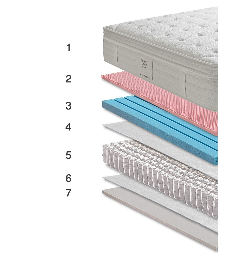 獨一無二的產品特性有:結合輕巧與耐久性的鈦合金技術獨立筒;Feel HD大豆釋壓綿,高透氣性與高彈性的服貼層材料;Smartcel™ 高等級奢華面料,還有天然羊毛和蠶絲填充。