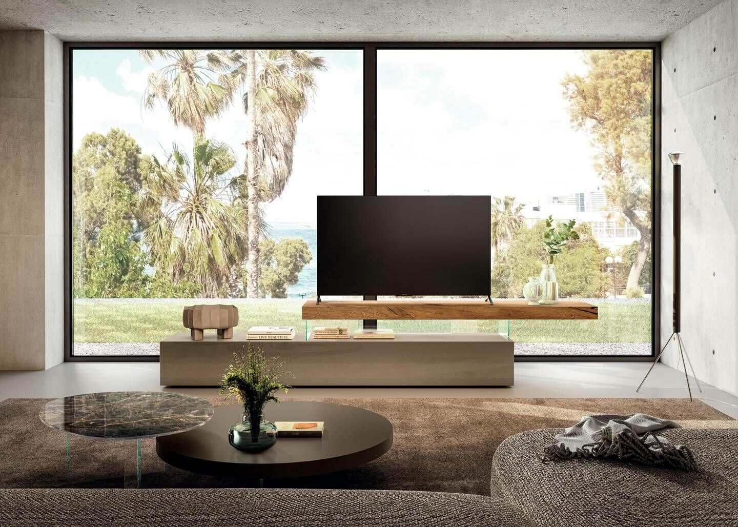 Air電視櫃以純透鋼化玻璃支撐,創造懸浮錯落的收納空間。無需牆面固定,可自由擺放,靈活規劃客廳佈局。