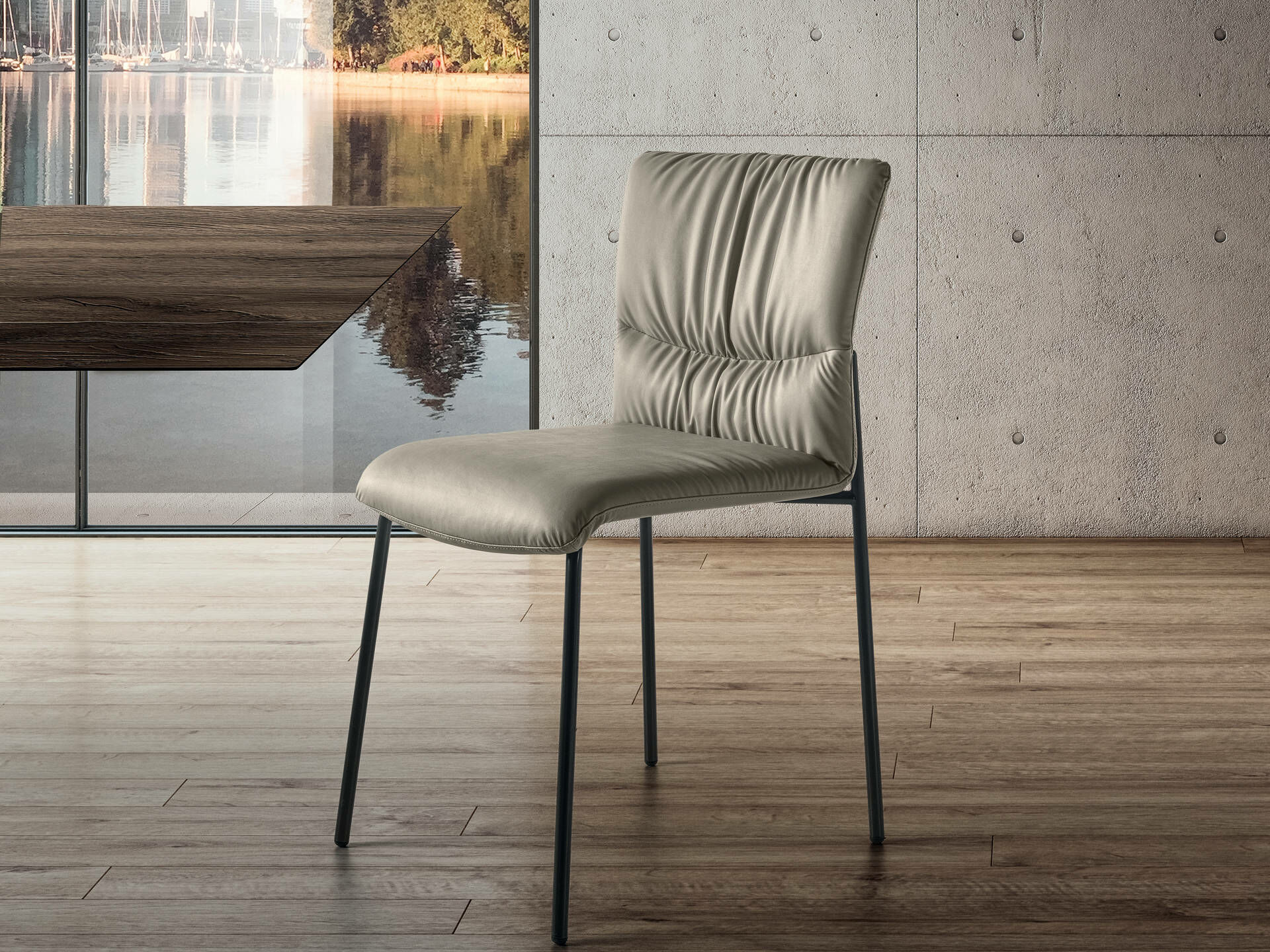 Woop餐椅以其柔美流暢的線條,帶來輕盈柔軟的坐感體驗。布料的摺痕賦予椅子極致優雅,不增加額外重量。椅架可選擇Peltro鋼或Titanio鋼表面處理,座椅則提供皮革、環保皮革、絲絨或布料多種包覆選擇。