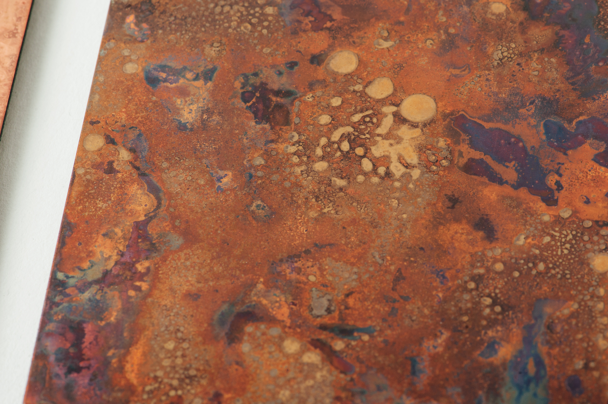 每件作品都是由職人手工製作, 以不斷地融合、重覆煮烤、浸泡的傳統技法使銅腐蝕而帶出優雅色澤的顯色技術, 充分展現出金屬充滿深度之美。