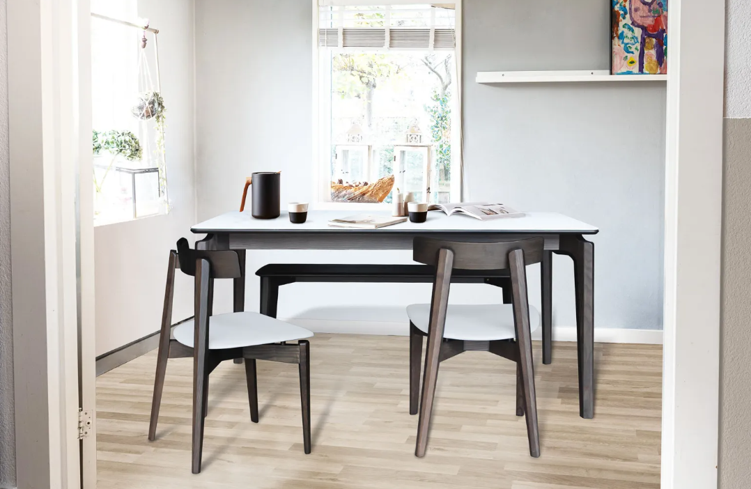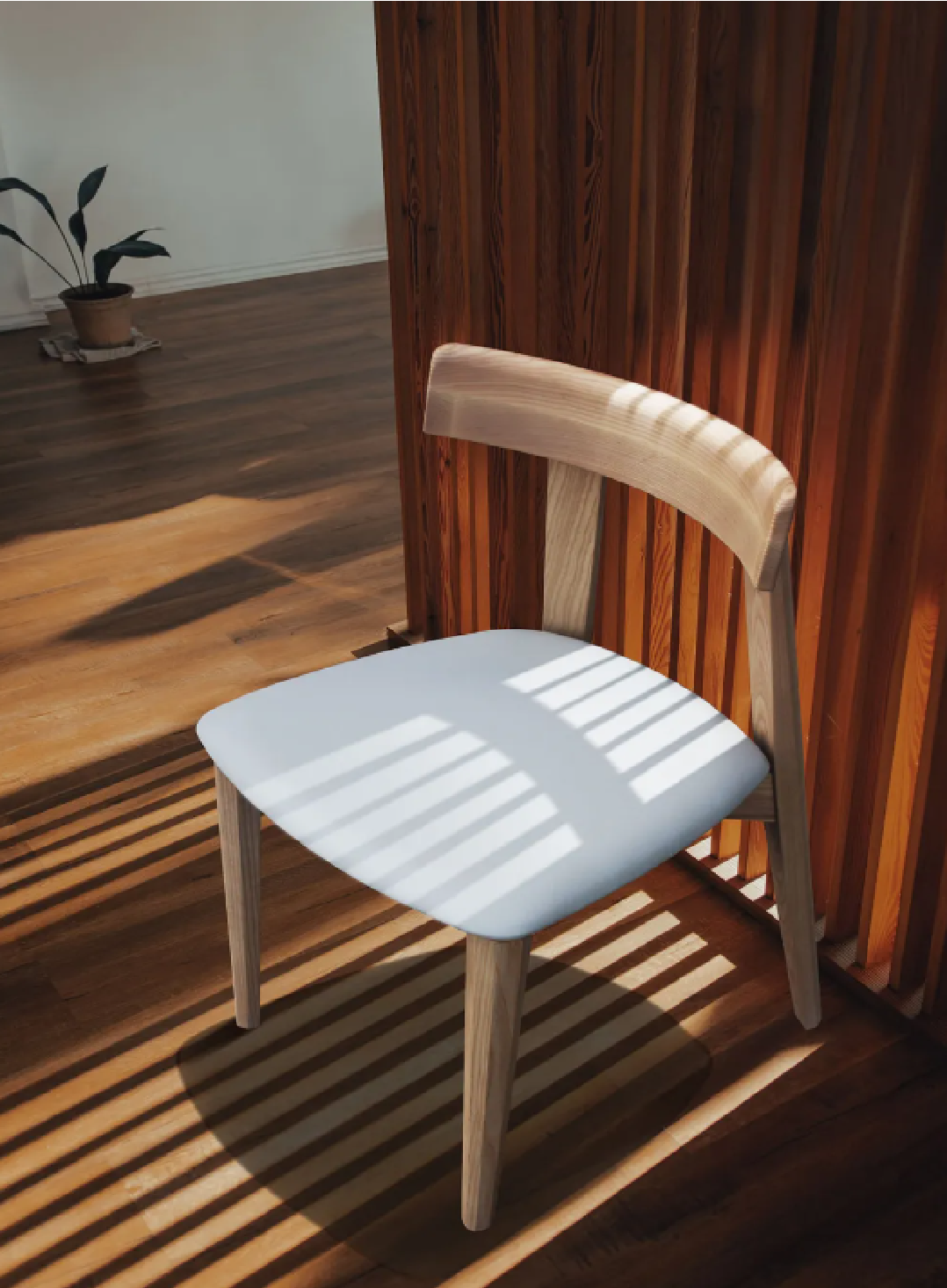 Mysa 餐椅沿襲該系列設計語彙,標誌性的七星劍造型椅腳,設計師將台灣民間信仰敬拜天象萬物,以及對平安幸福的嚮往與追求,體現在Mysa系列家具之中。