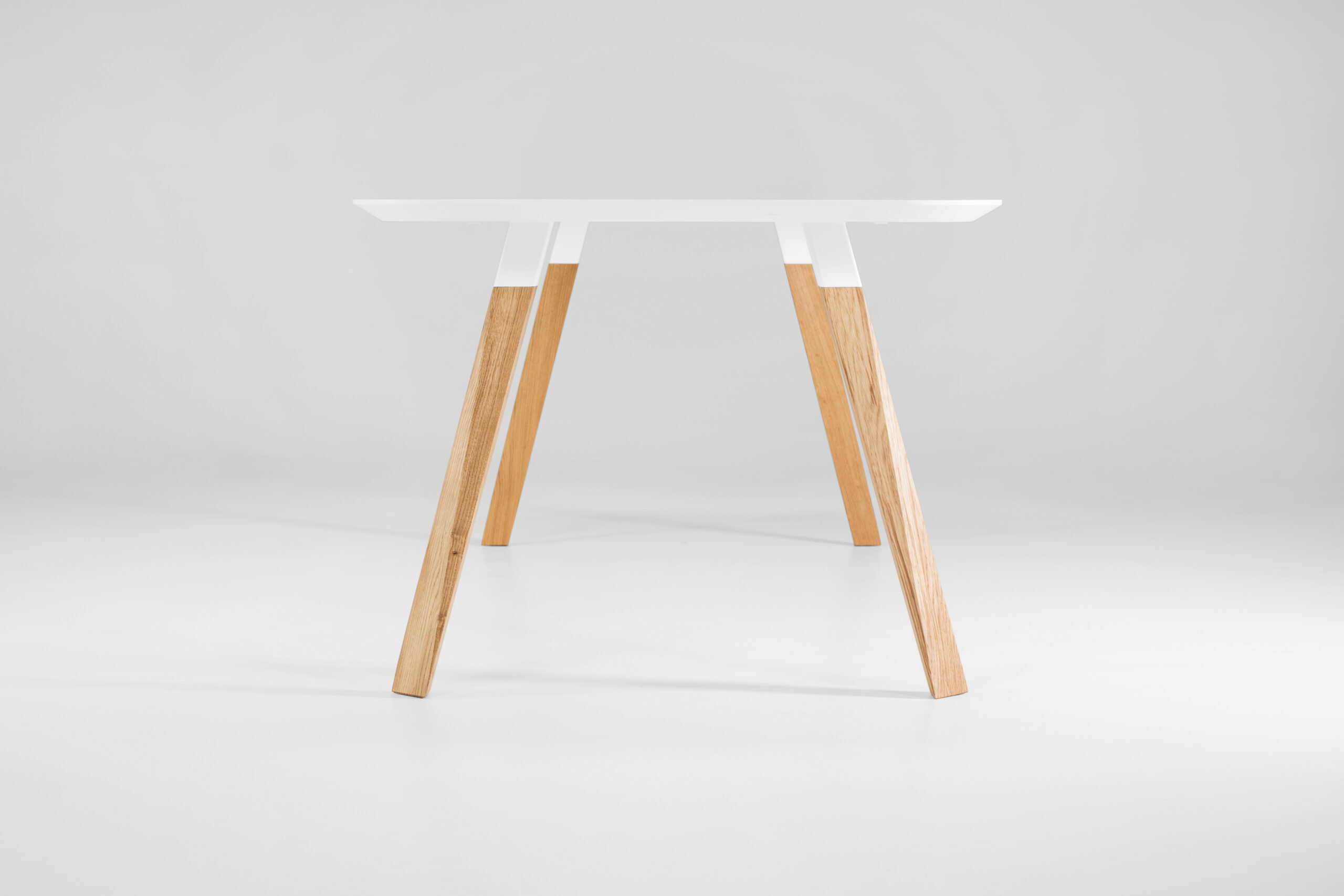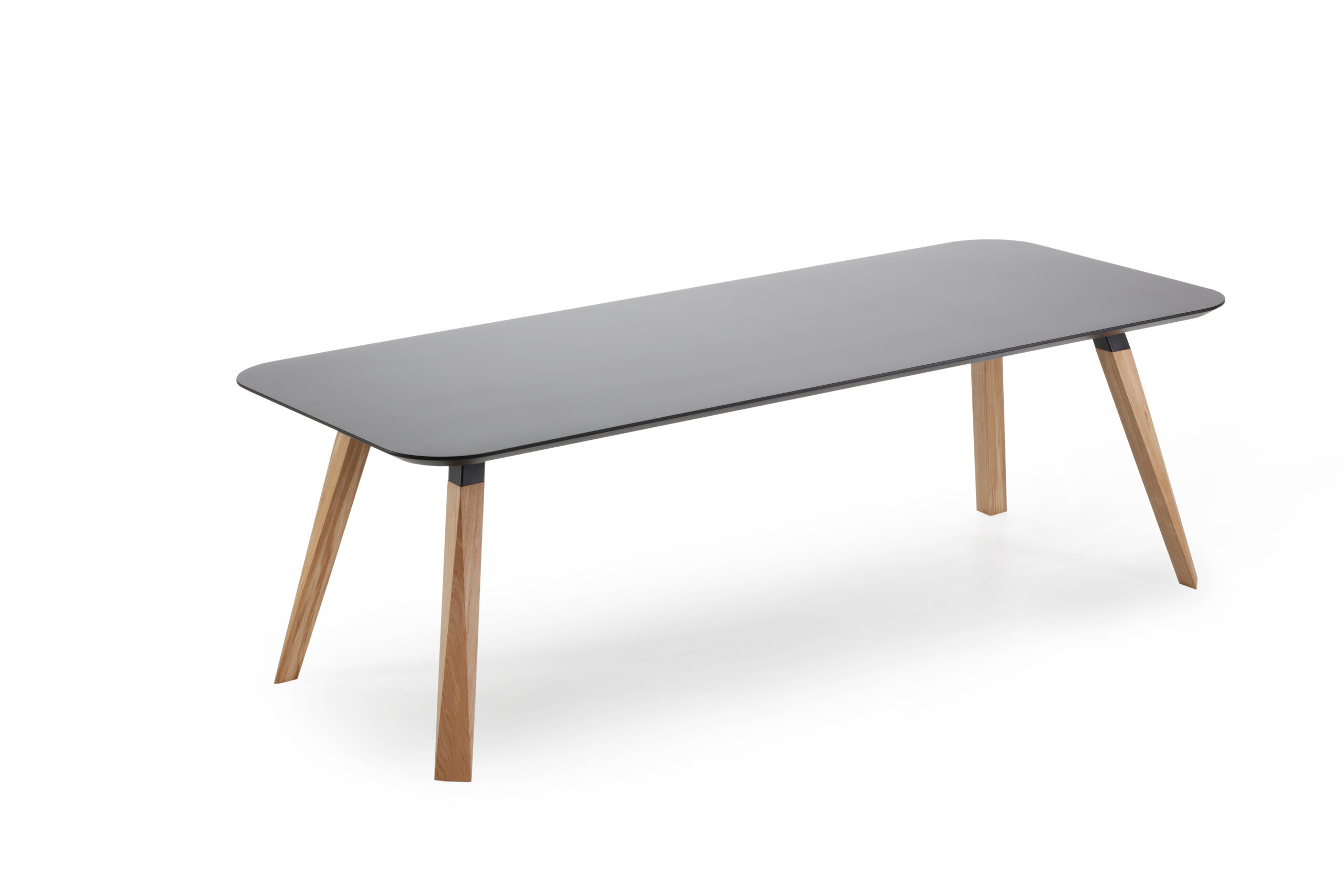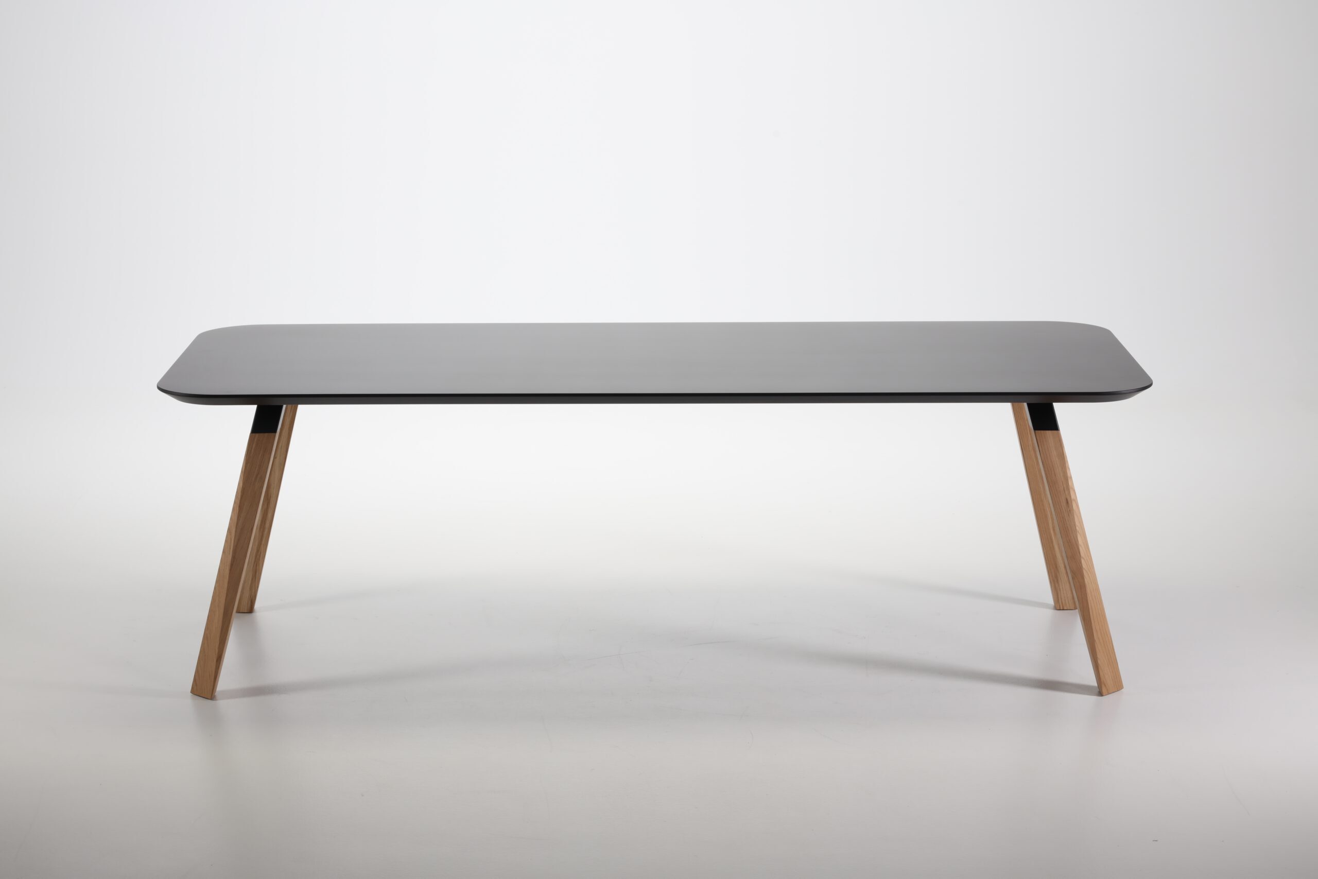 Oblique 系列透過辦公桌和餐桌的創作而臻於完整。這張桌子充分體現了整個系列的特色,桌腳採用實心木材製作並具有獨特的幾何造型,搭配任何尺寸的懸浮式桌面,整體設計堪稱完美。這件作品強調厚實木材質感與特殊幾何線條的結合,桌面呈現懸浮的視覺效果,可製作成各種不同尺寸,完美體現了整個 Oblique 系列的設計精神。