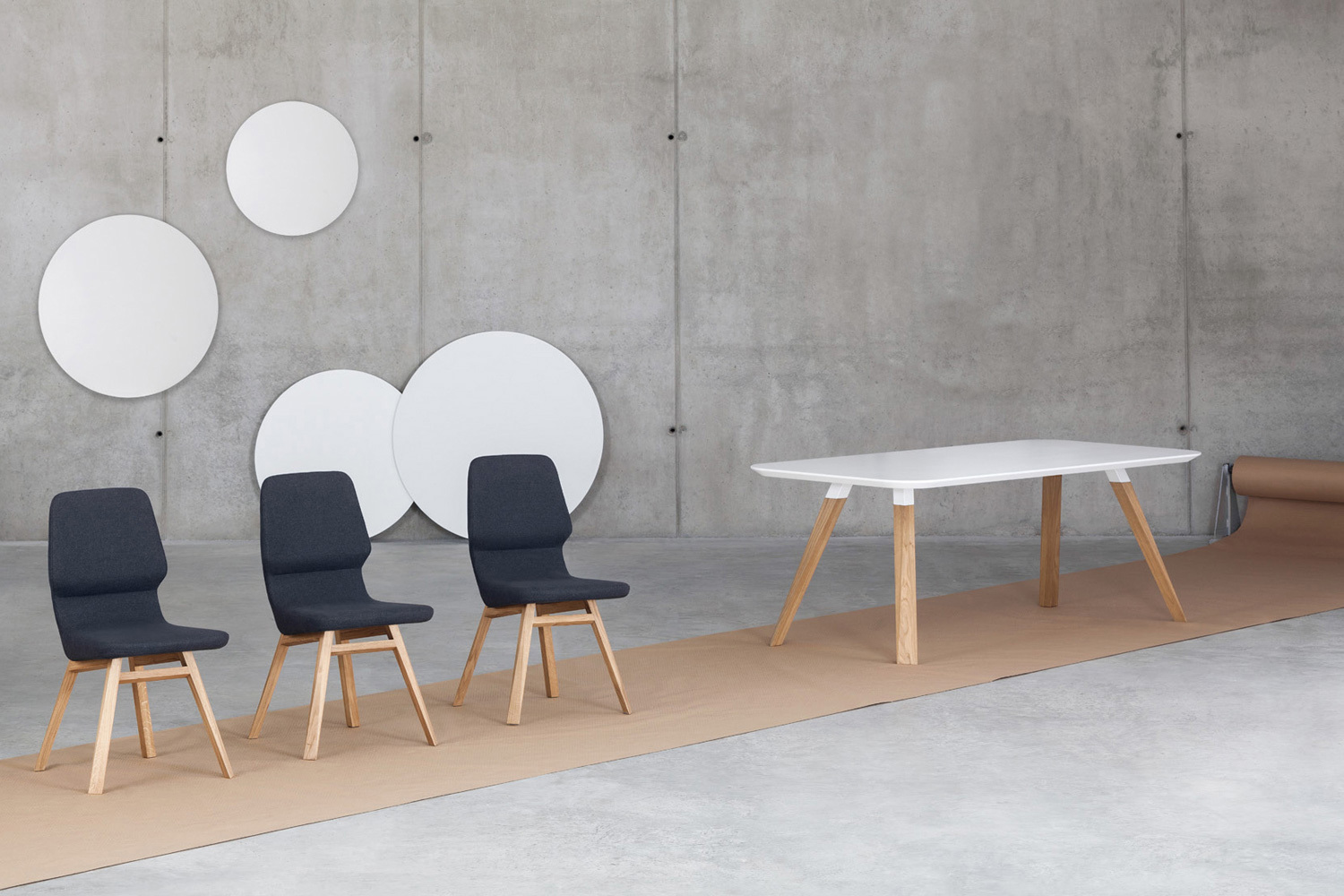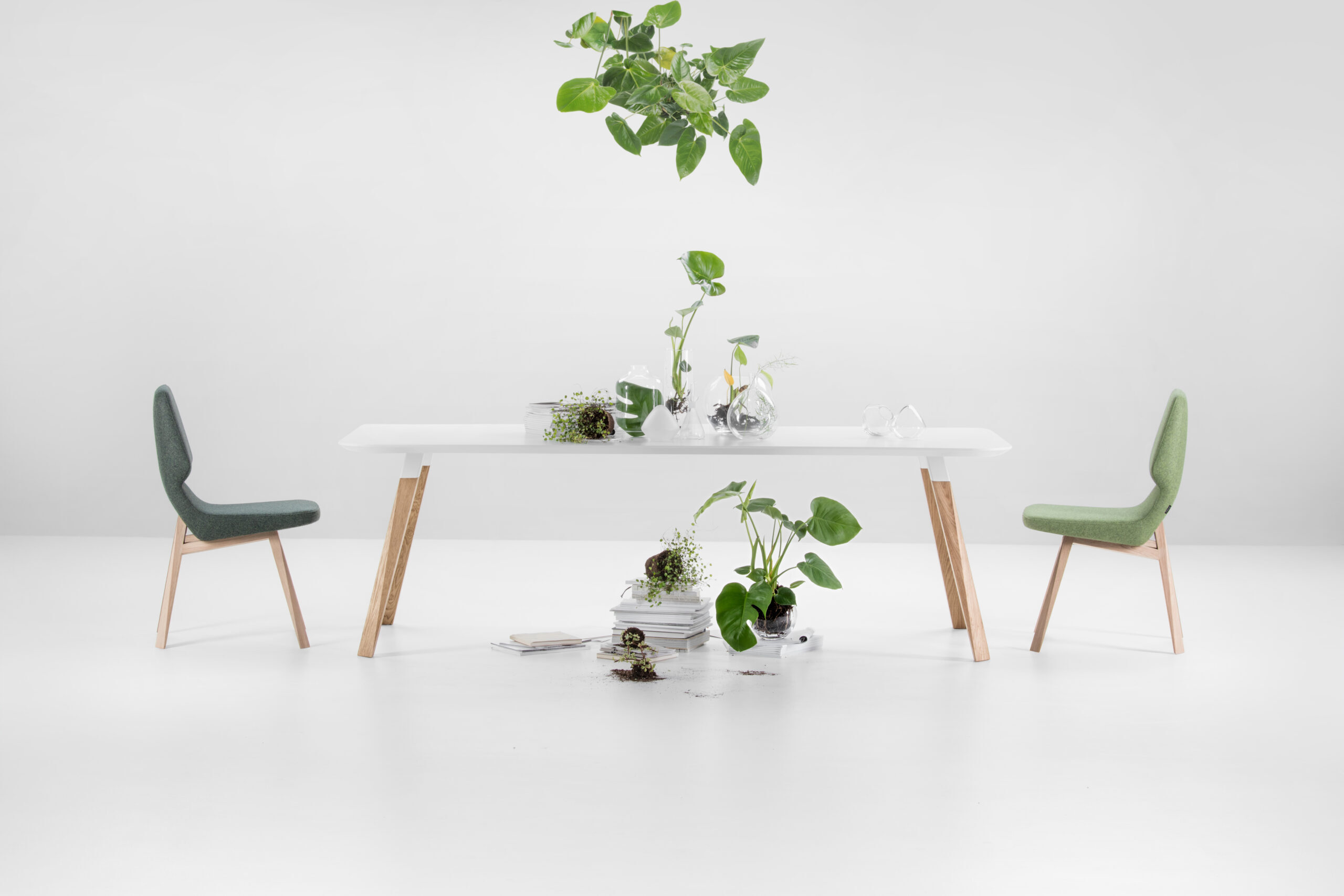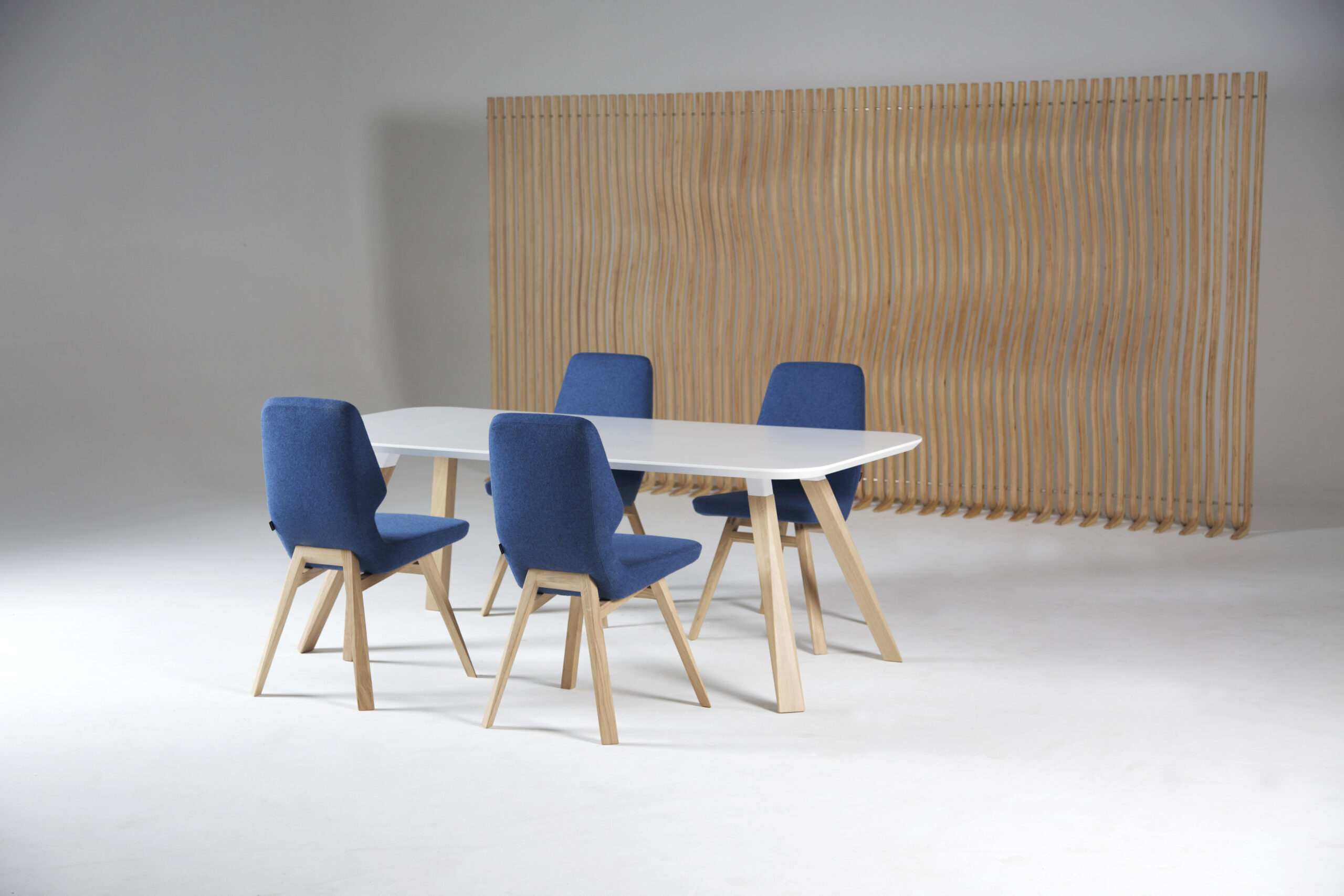 Oblique 系列透過辦公桌和餐桌的創作而臻於完整。這張桌子充分體現了整個系列的特色,桌腳採用實心木材製作並具有獨特的幾何造型,搭配任何尺寸的懸浮式桌面,整體設計堪稱完美。這件作品強調厚實木材質感與特殊幾何線條的結合,桌面呈現懸浮的視覺效果,可製作成各種不同尺寸,完美體現了整個 Oblique 系列的設計精神。