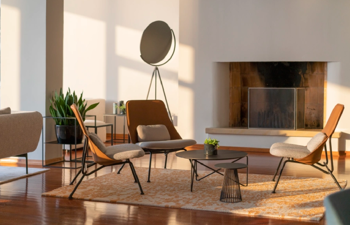 Strain系列包含休閒椅、吧台椅和多款桌子,共享獨特的底座設計。鋼管交織扭轉的連接點為每件產品創造辨識度高的外觀,根據用途可調整模組關係,既美觀又平衡結構硬度。