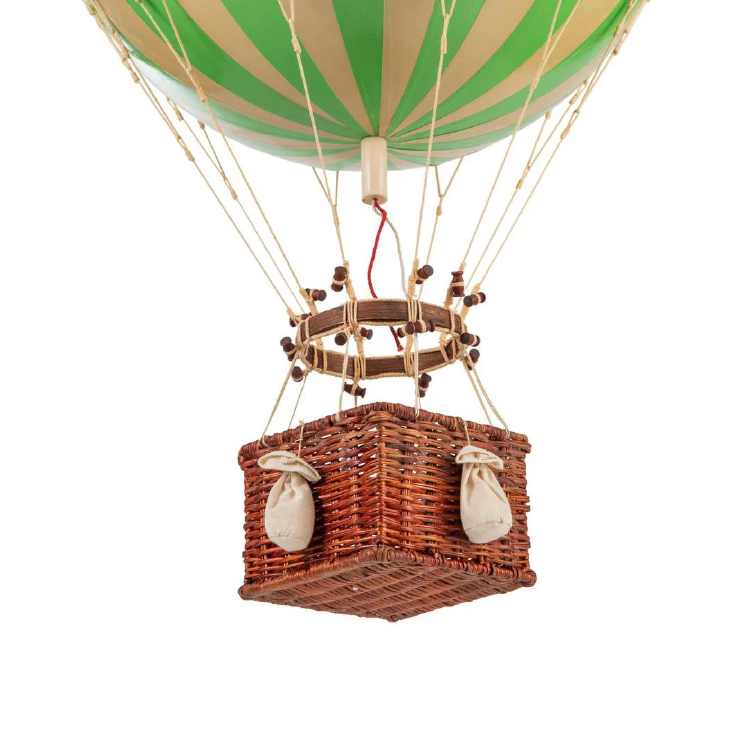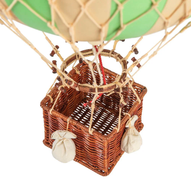 想像一下,飄過天空,當你抓著柳條籃,俯視下面的世界時,熱氣從頭頂傳來,這不是很好嗎?這款大型 Authentic Models 熱氣球採用手工粘貼寬綠色紙條,營造出複古氣球外觀。帶有仿製沙袋的藤籃重量輕,精緻地懸掛在打結的網和木栓上。非常適合兒童托兒所、婚禮裝飾或異想天開的家居配飾,將這款大型熱氣球模型與其他顏色和尺寸一起搭配,參加一場迷人的氣球競賽!