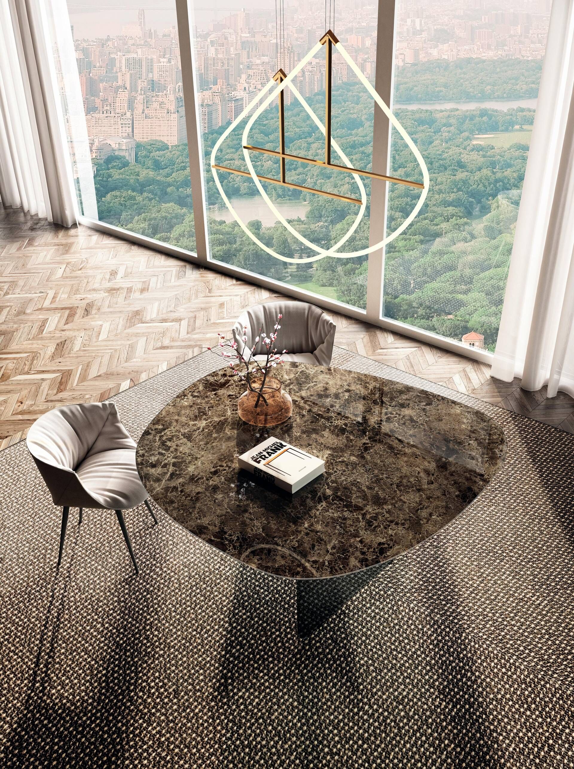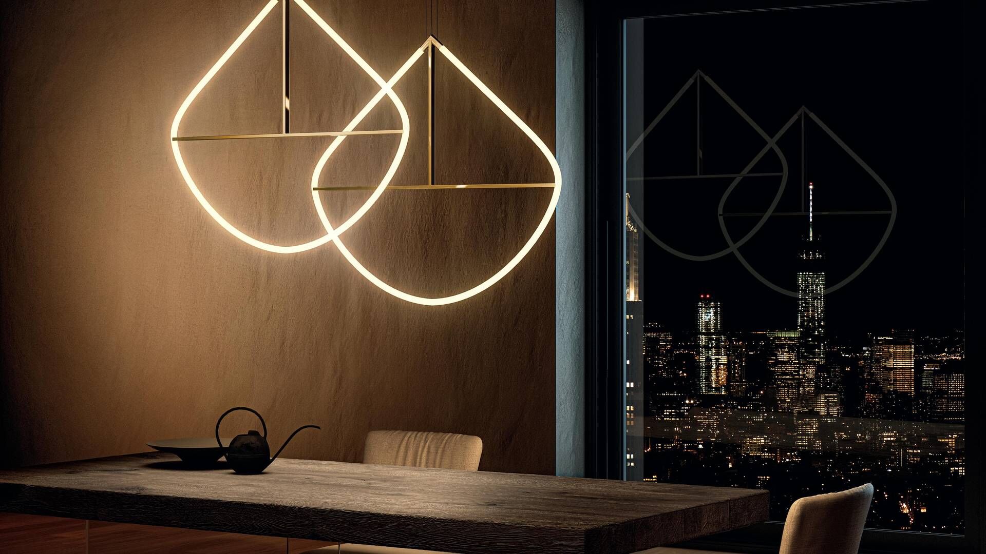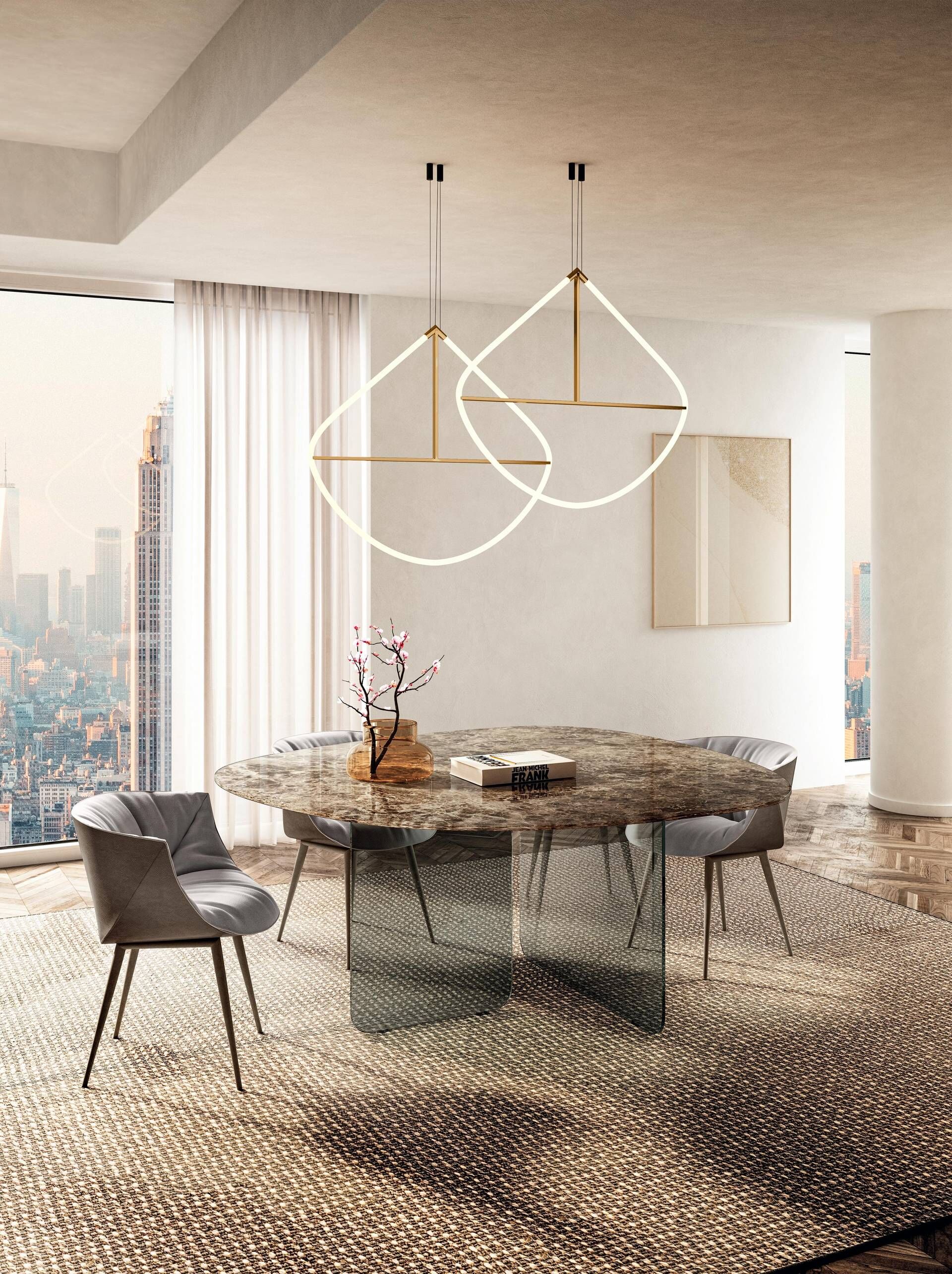 以優雅的緞面黃銅結構展現俐落質感,Chic 吊燈以柔和的幾何線條構築出輕盈的造型。纖細而平衡的設計,讓光體呈現細緻的比例與節奏。它能自然融入高雅的空間氛圍,散發柔和光影,營造出靜謐而精緻的格調。