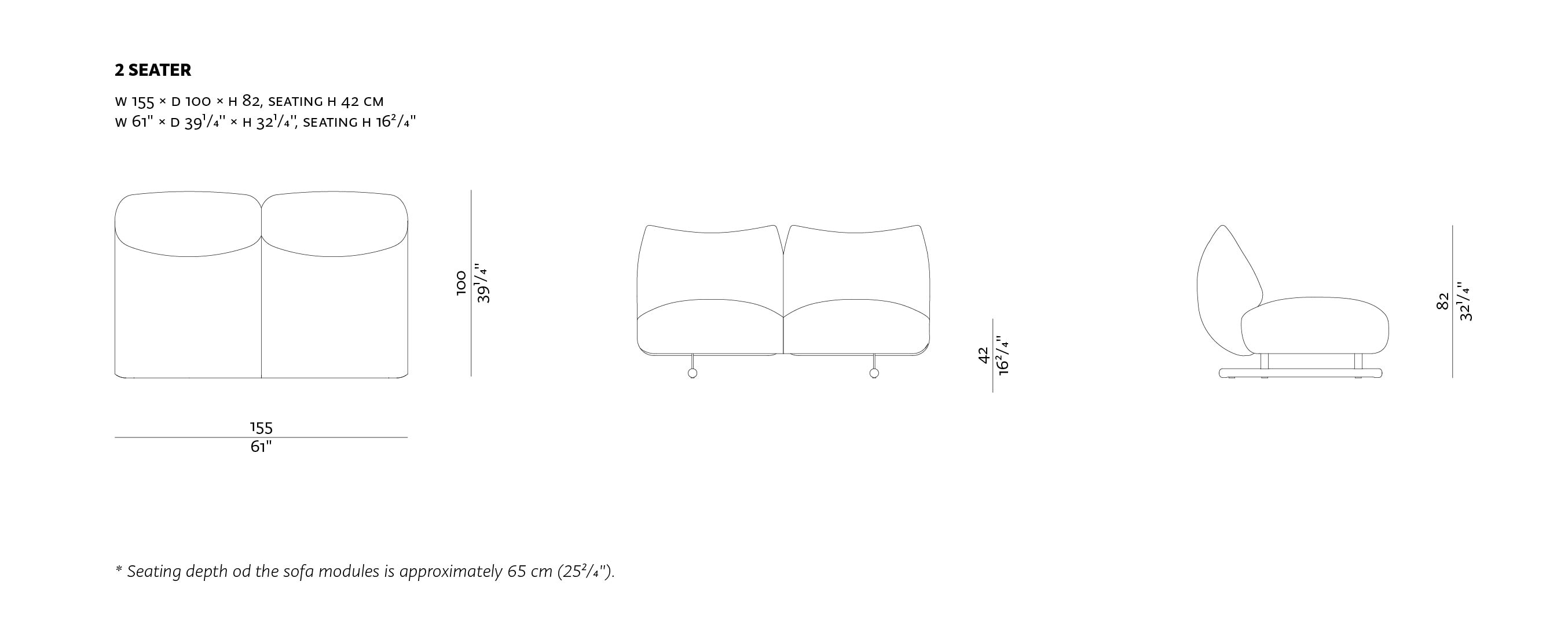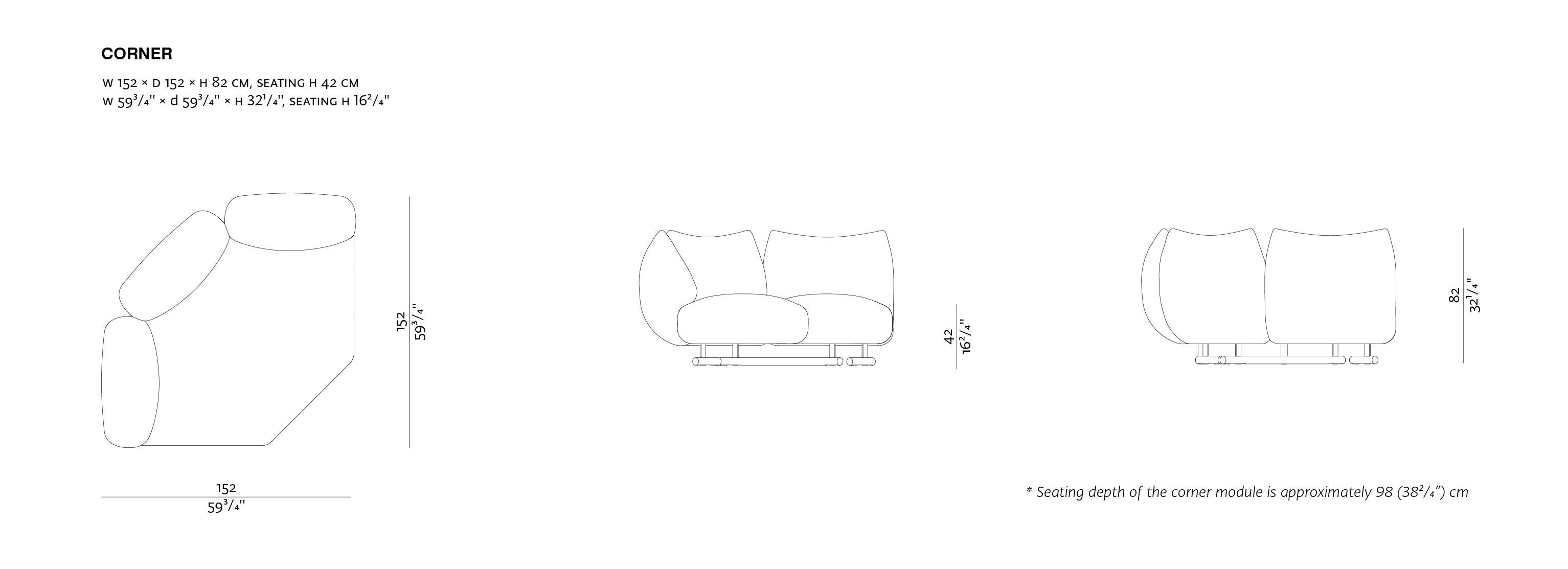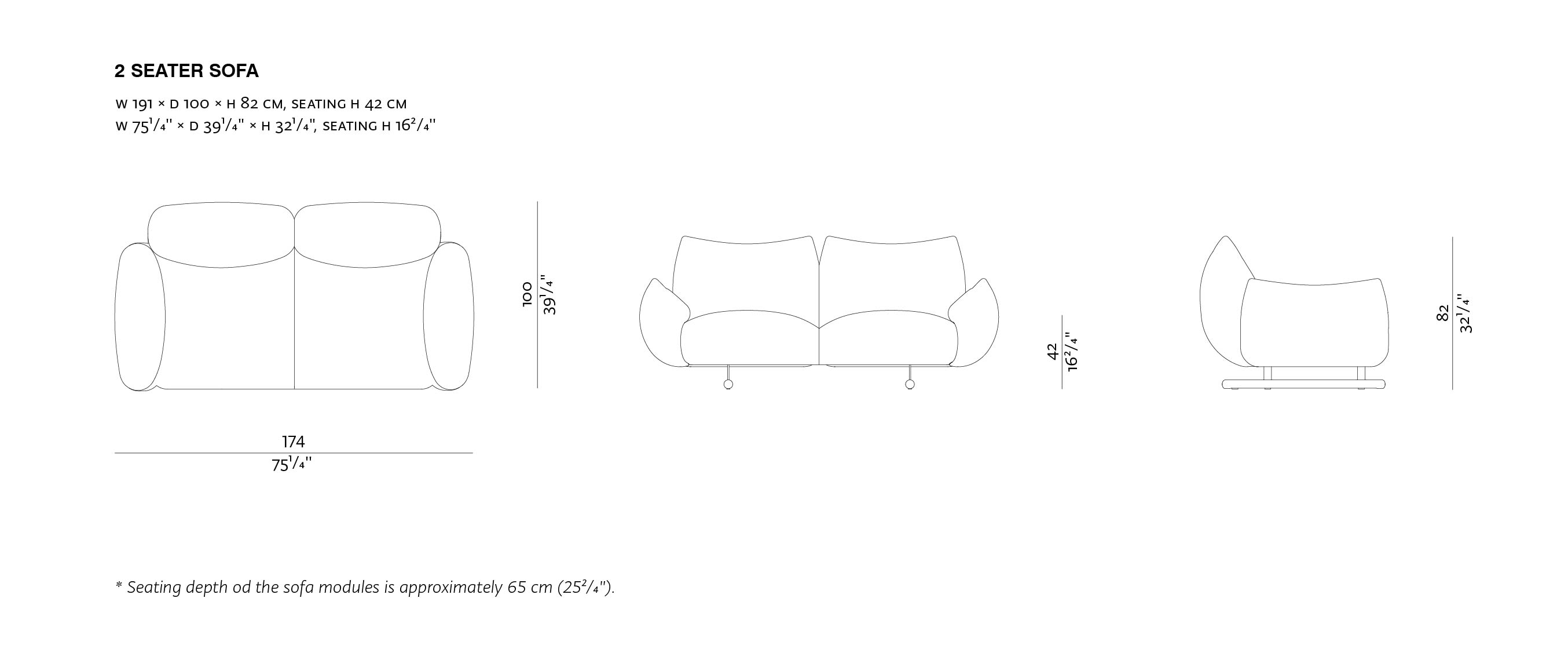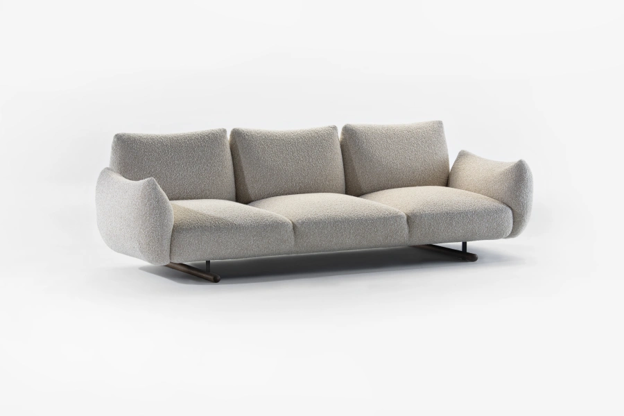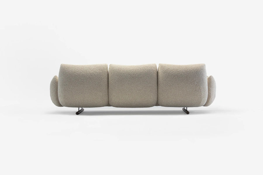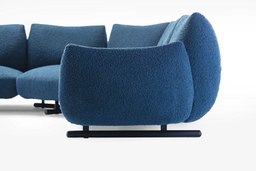 沙發本身以寬大柔軟的靠墊和柔和雕塑感的造型帶來即刻舒適。設計以放鬆為核心,曲線取代硬角,營造大膽又俏皮的休憩氛圍。符合人體工學的扶手可作為頭枕,讓各種坐姿皆自在。Buffa 將幽默趣味與深沉觸感的奢華感融合,是在家中或共享空間放鬆身心的理想選擇。
