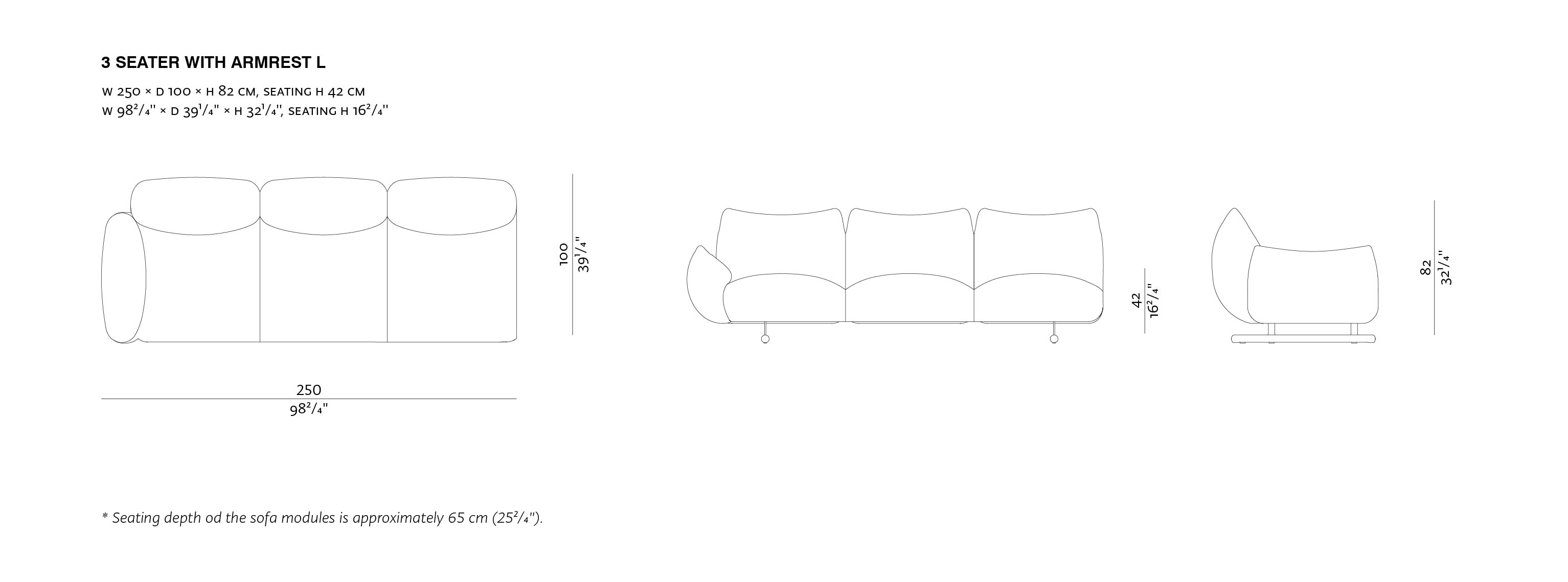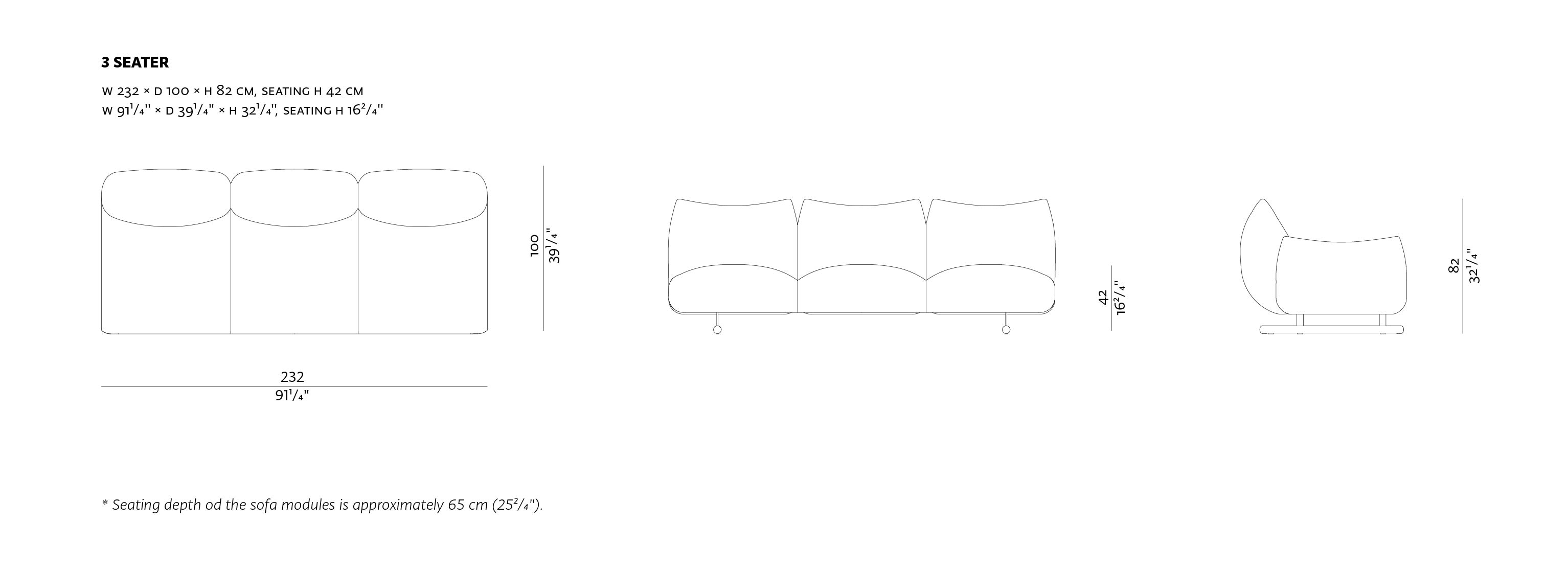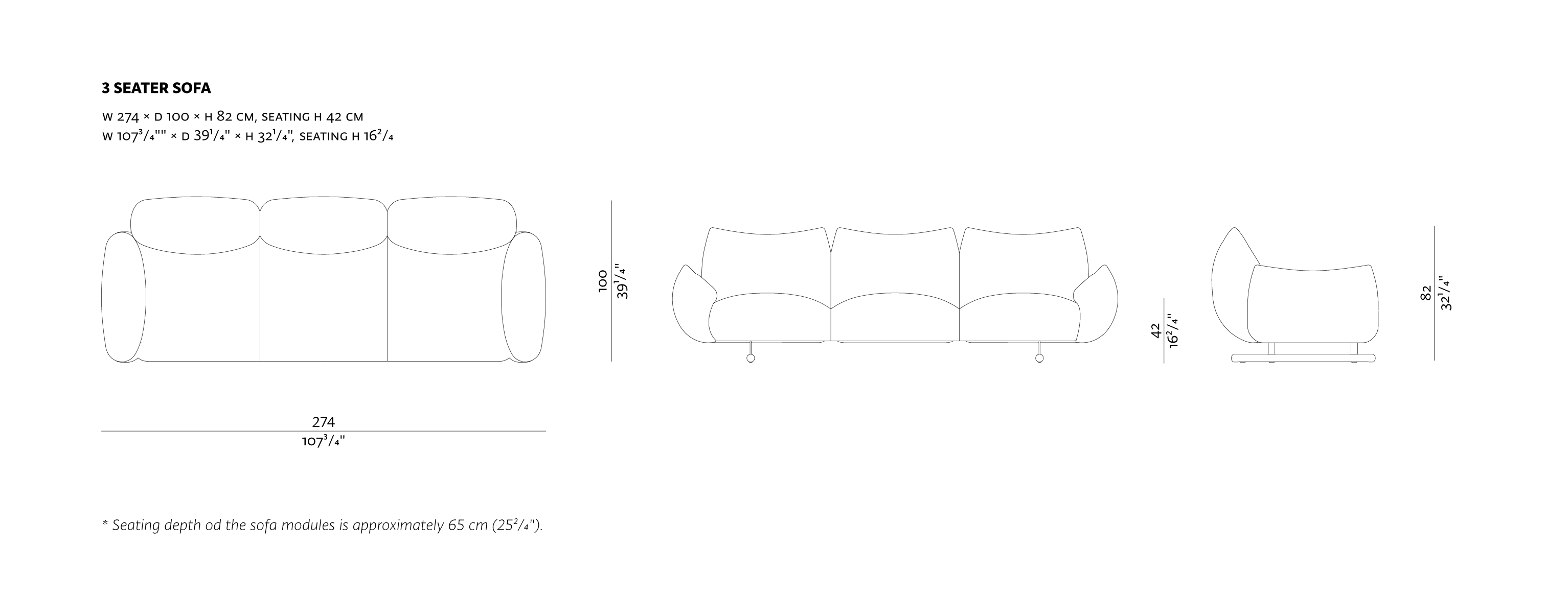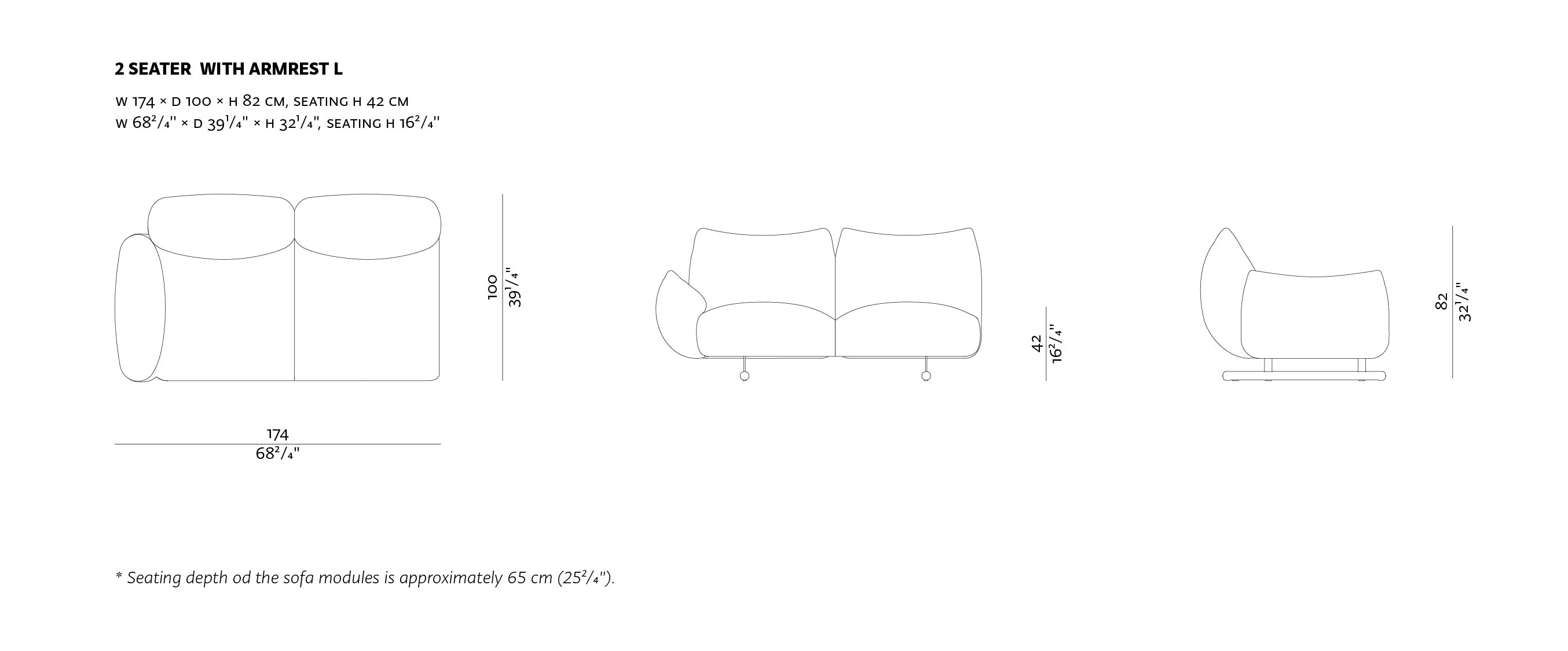 沙發本身以寬大柔軟的靠墊和柔和雕塑感的造型帶來即刻舒適。設計以放鬆為核心,曲線取代硬角,營造大膽又俏皮的休憩氛圍。符合人體工學的扶手可作為頭枕,讓各種坐姿皆自在。Buffa 將幽默趣味與深沉觸感的奢華感融合,是在家中或共享空間放鬆身心的理想選擇。